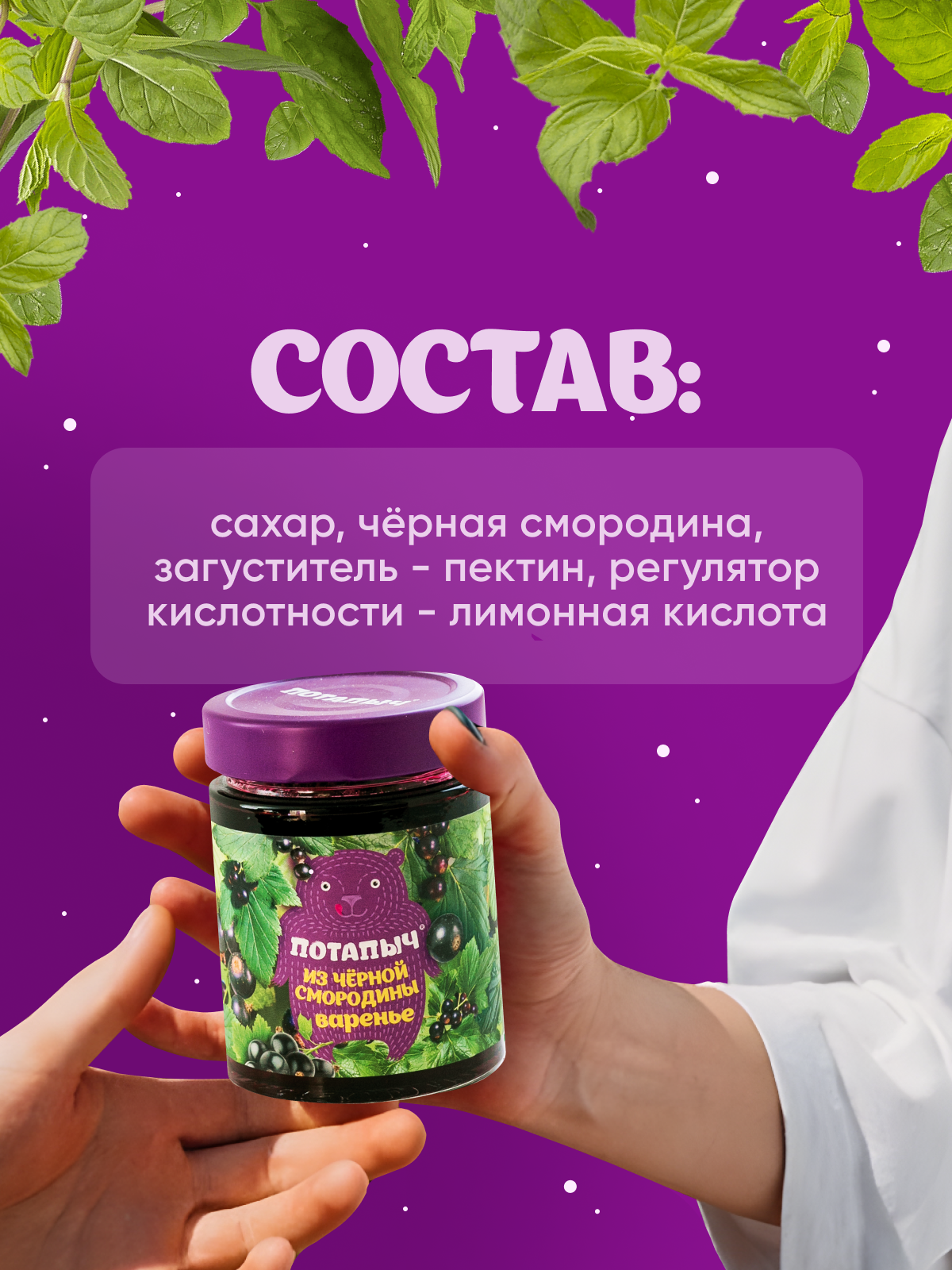 Варенье из чёрной смородины Потапыч натуральное, ст/бан 280 гр. интересное: