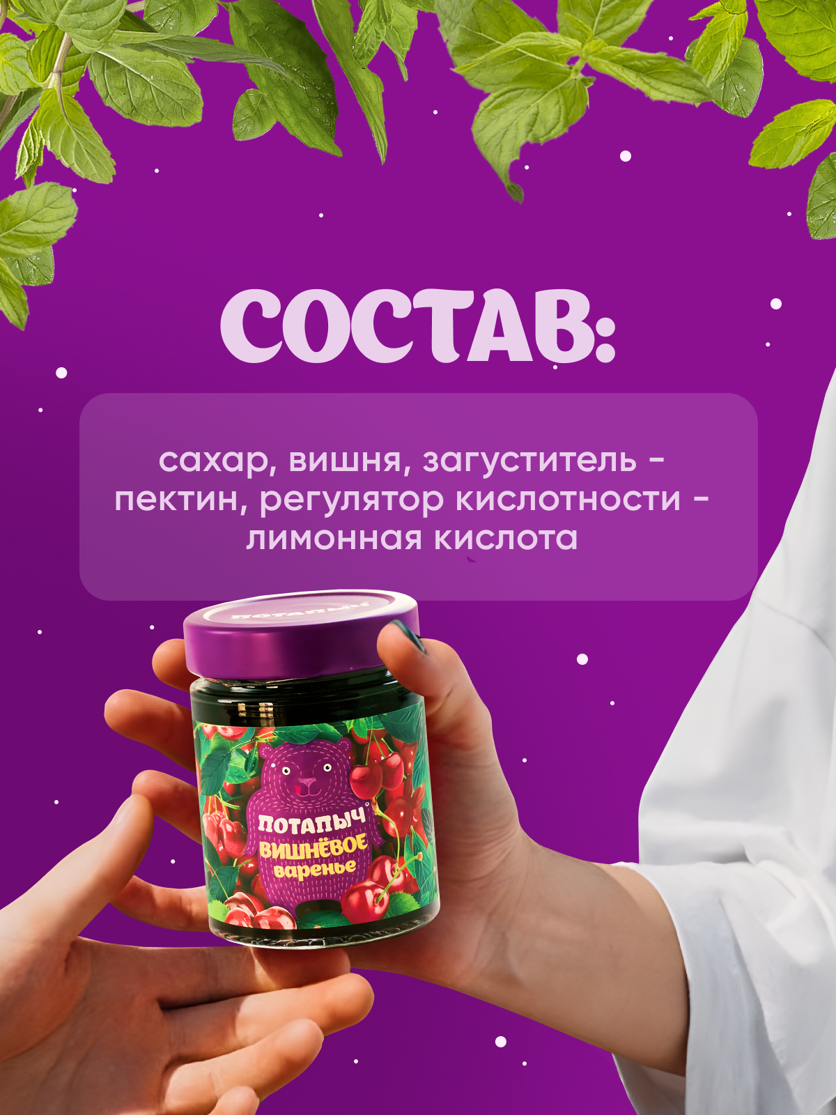 Вишнёвое варенье Потапыч натуральное, без консервантов, ст/бан 280 гр. интересное: