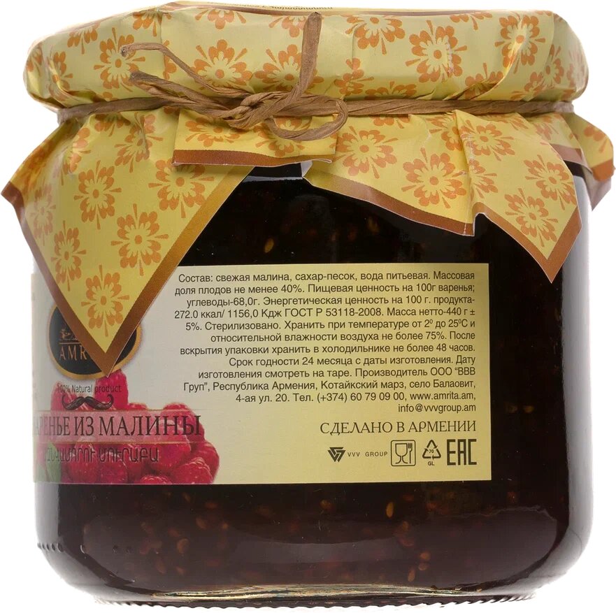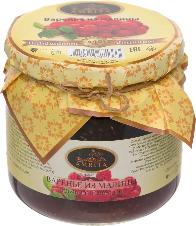 Натуральное варенье из ягод малины, 440 грамм, стеклянная банка, Армения интересное: