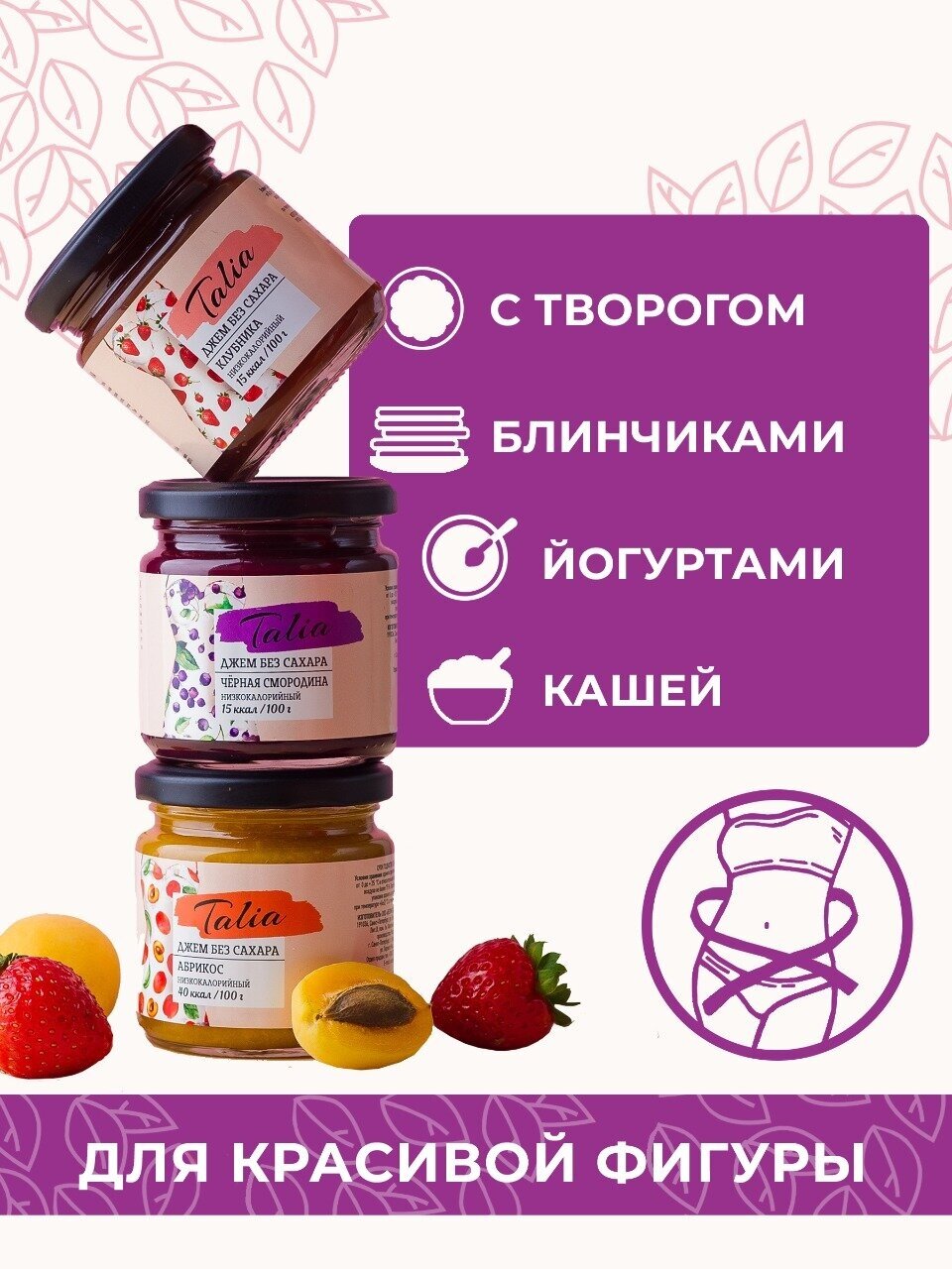 Джем zero без сахара низкокалорийный "Talia" черная смородина, 180гр интересное: