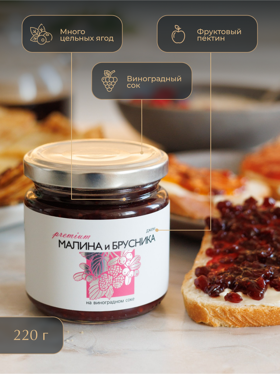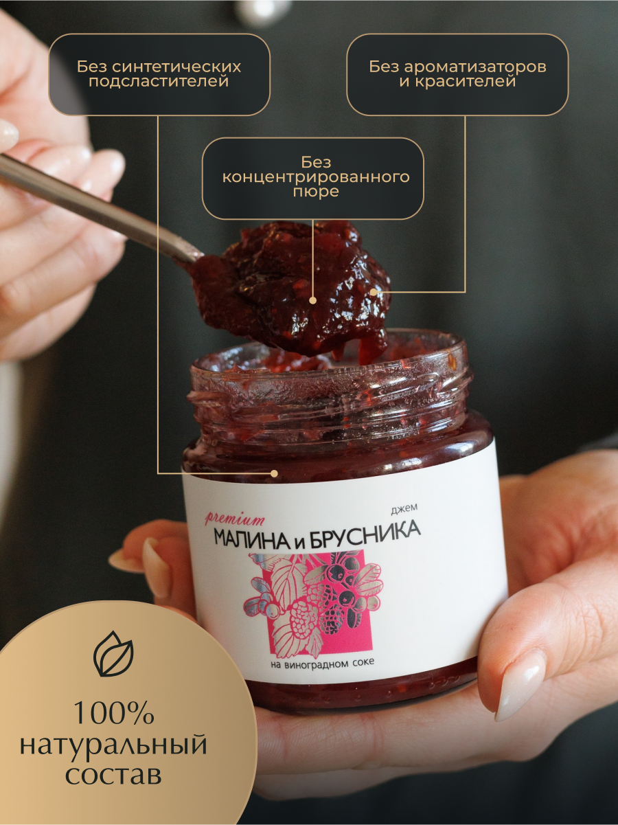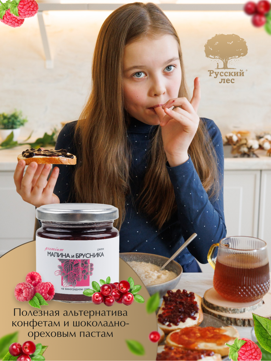 Купить Джем из Малины и Брусники "Русский лес" без сахара 220 гр Набор из 3 банок