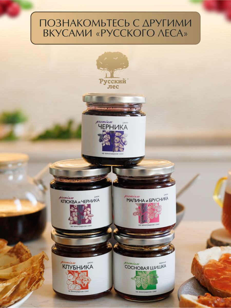 Джем из Клюквы и Черники "Русский Лес" без сахара 220 г. Набор из 3 банок