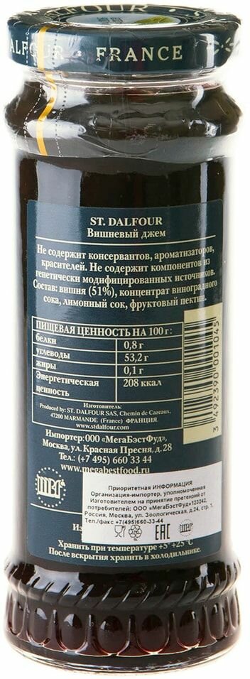 Джем St.Dalfour Вишня 100% фруктов без сахара 284г интересное: