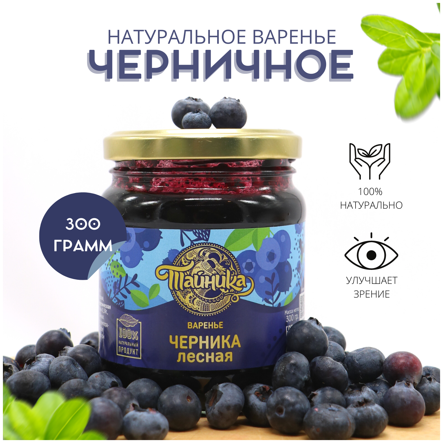 Варенье "Черника лесная" натуральное органическое, 300 грамм / Тайника интересное: