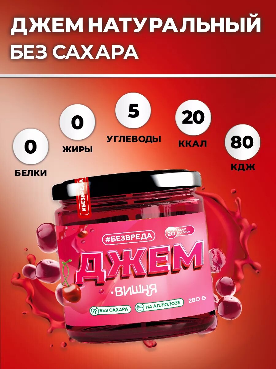 Купить Джем "безвреда" из вишни без сахара 280 гр / Джем низкокалорийный вишня / Джем без сахара