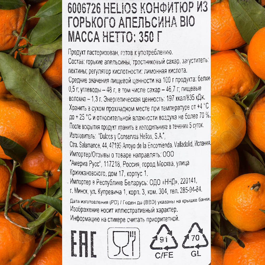Варенье HELIOS Конфитюр из горького апельсина BIO, 350г интересное:
