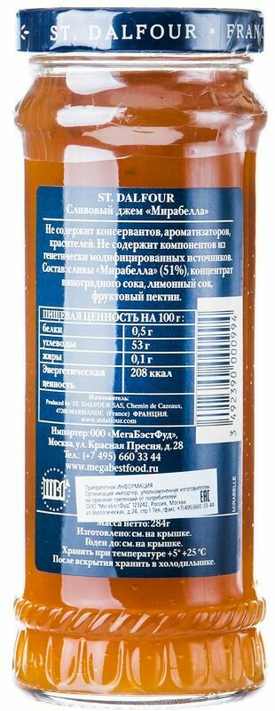 Джем St.Dalfour Слива "Мирабелла" 100% фруктов без сахара 284г интересное: