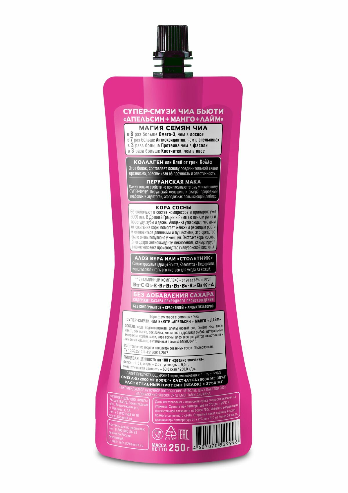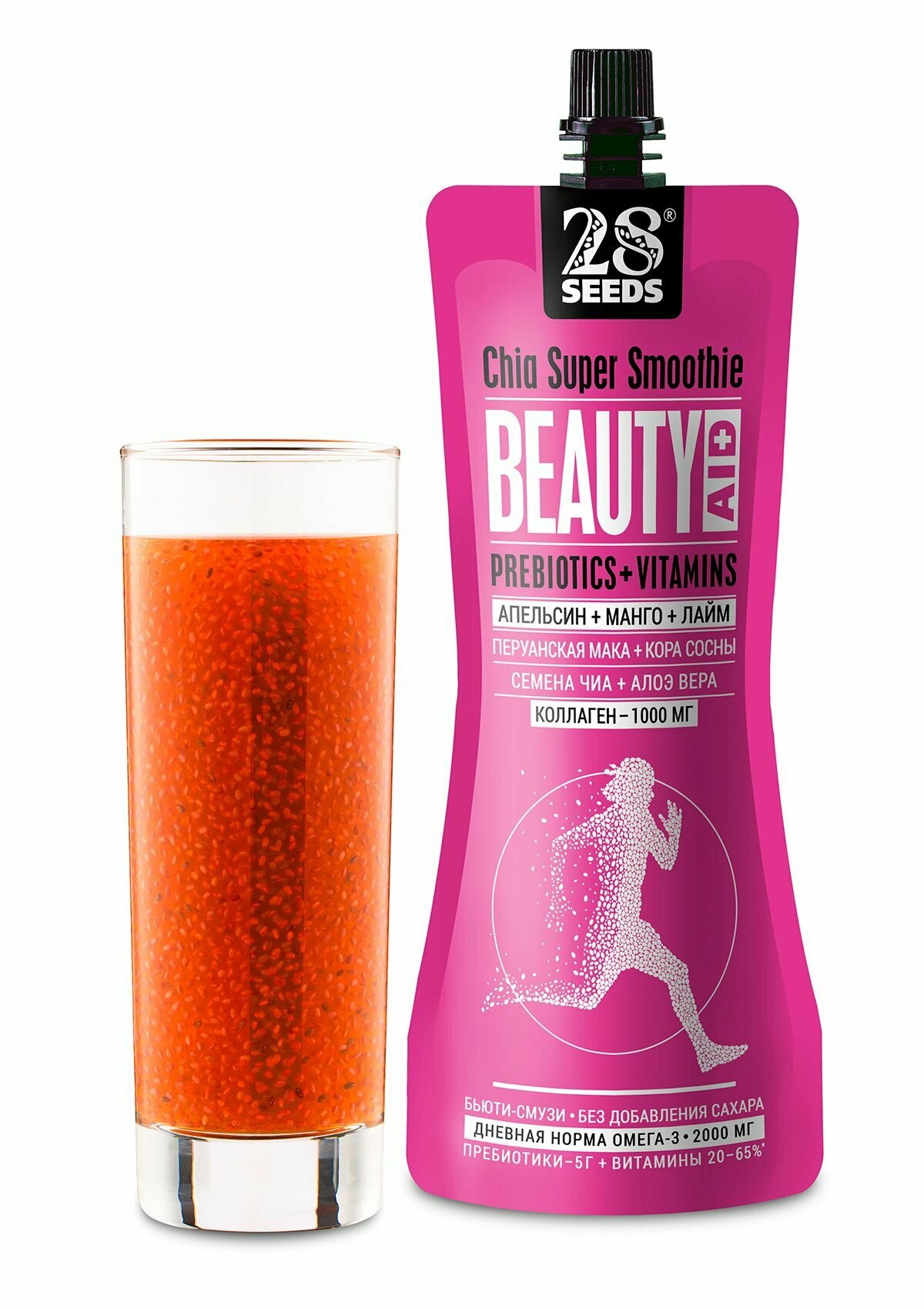Супер-смузи 28SEEDS, смузи без сахара Чиа бьюти Апельсин + Манго + Лайм, 10 шт интересное: