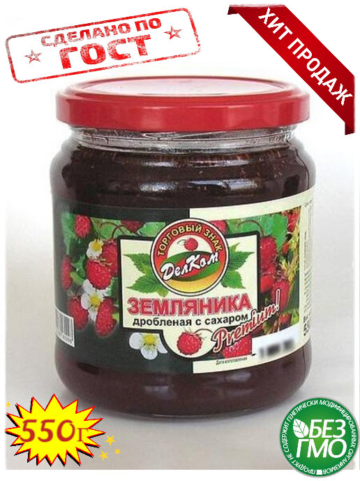 Земляника дроблёная (протертая) с сахаром 550г интересное: