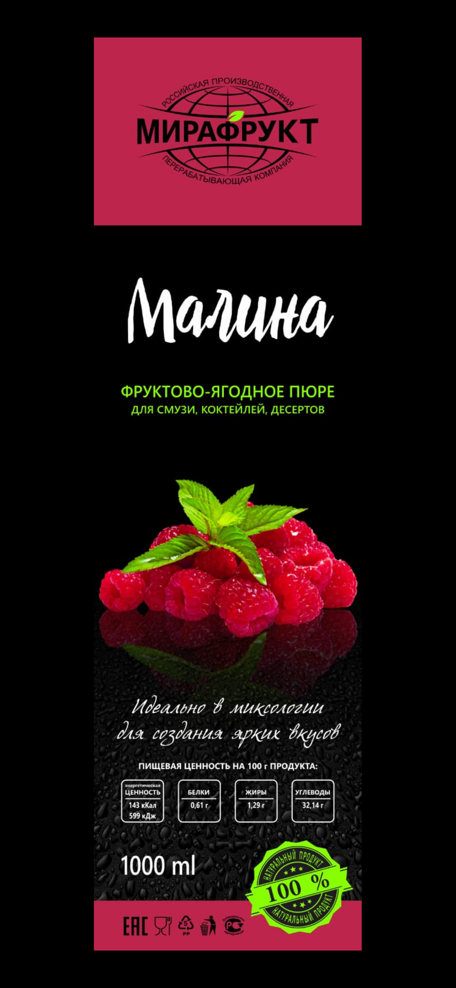 Концентрат-пюре мирафрукт Малина 1л интересное: