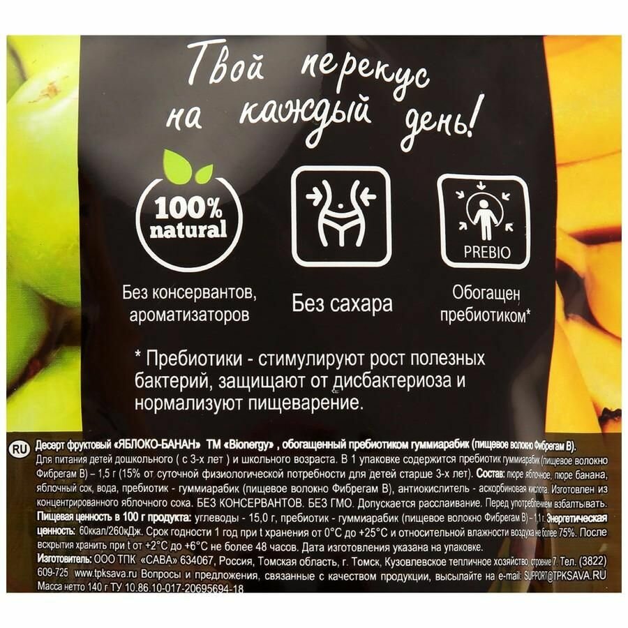 Десерт фруктовый "BioNergy" Яблоко-банан, 140 гр сава, 5 шт. в наборе интересное: