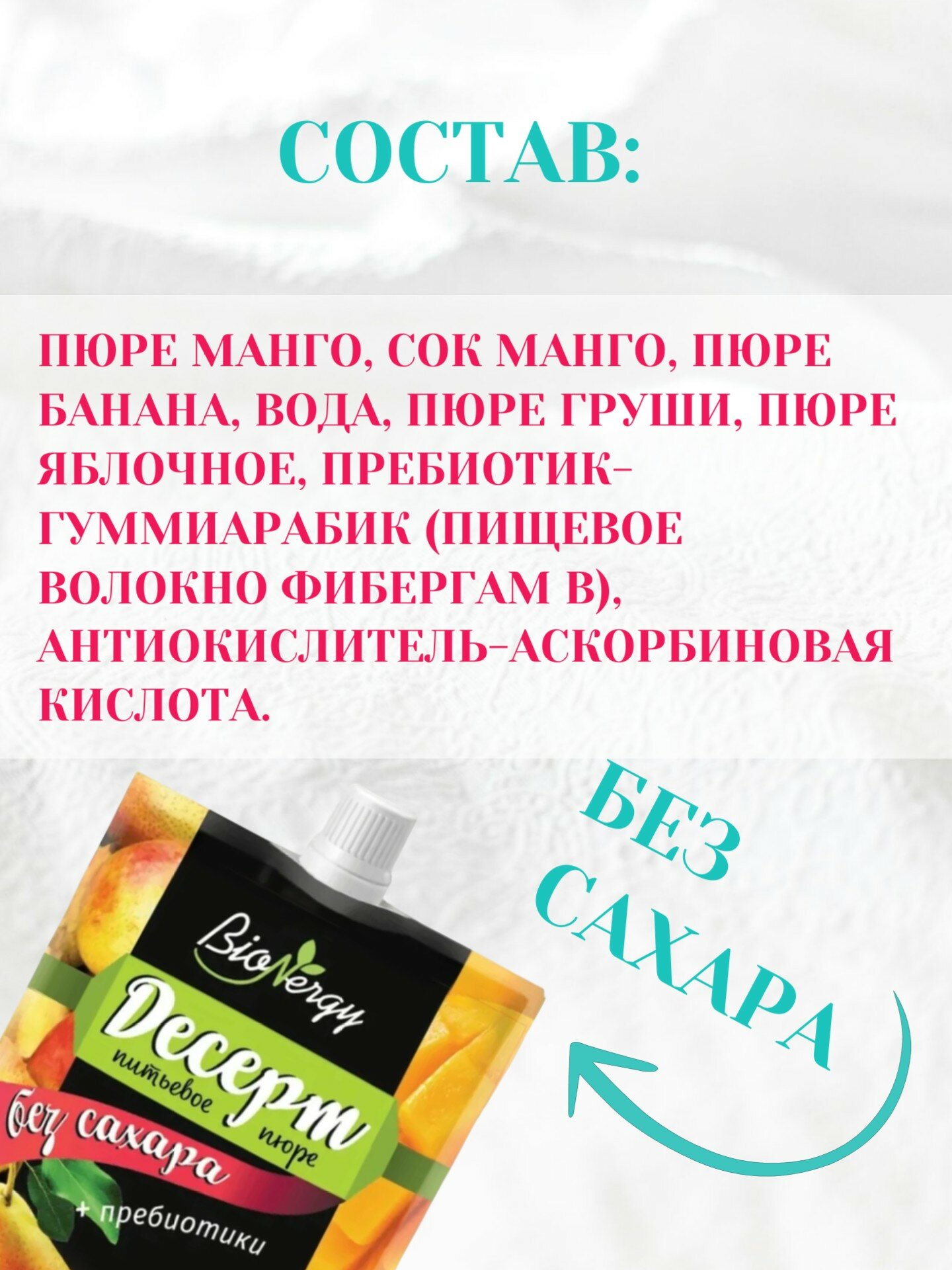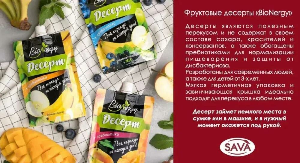 Десерт фруктовый "BioNergy" Груша-банан-манго, 140 гр сава, 5 шт в наборе интересное: