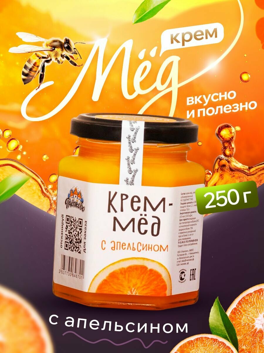 Мед с Апельсином, 250г, цветочный, с сублимированными фруктами. интересное: