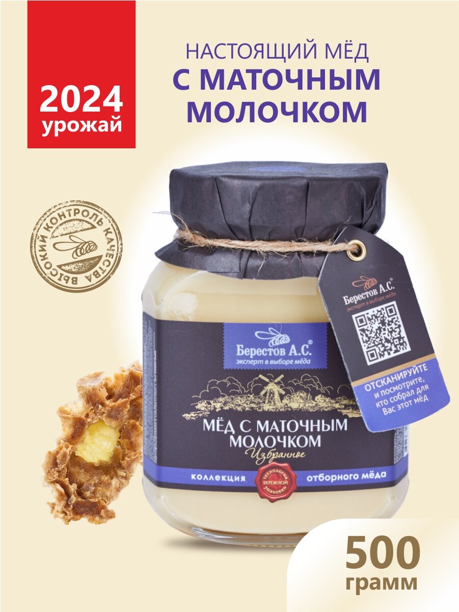 Купить Мед натуральный С Маточным Молочком, 500 гр. Берестов А. С, сбор 2024 года