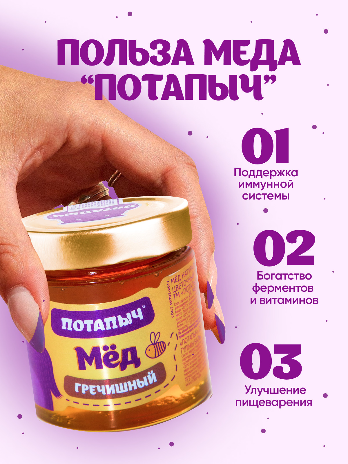 Гречишный мёд Потапыч натуральный без сахара, ст/бан 250 гр. интересное: