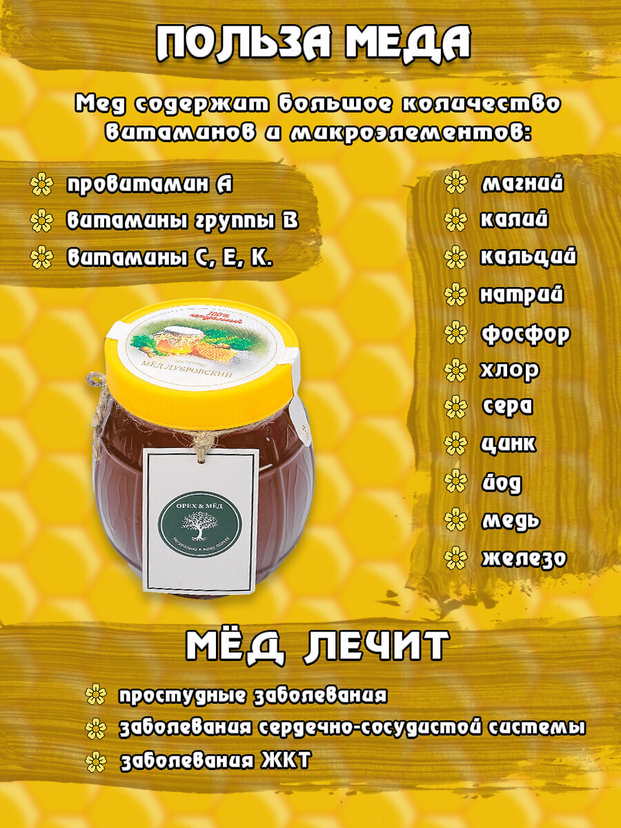 Натуральный цветочный мёд "Дубровский" от бренда "Орех&Мед", 300 мл. интересное: