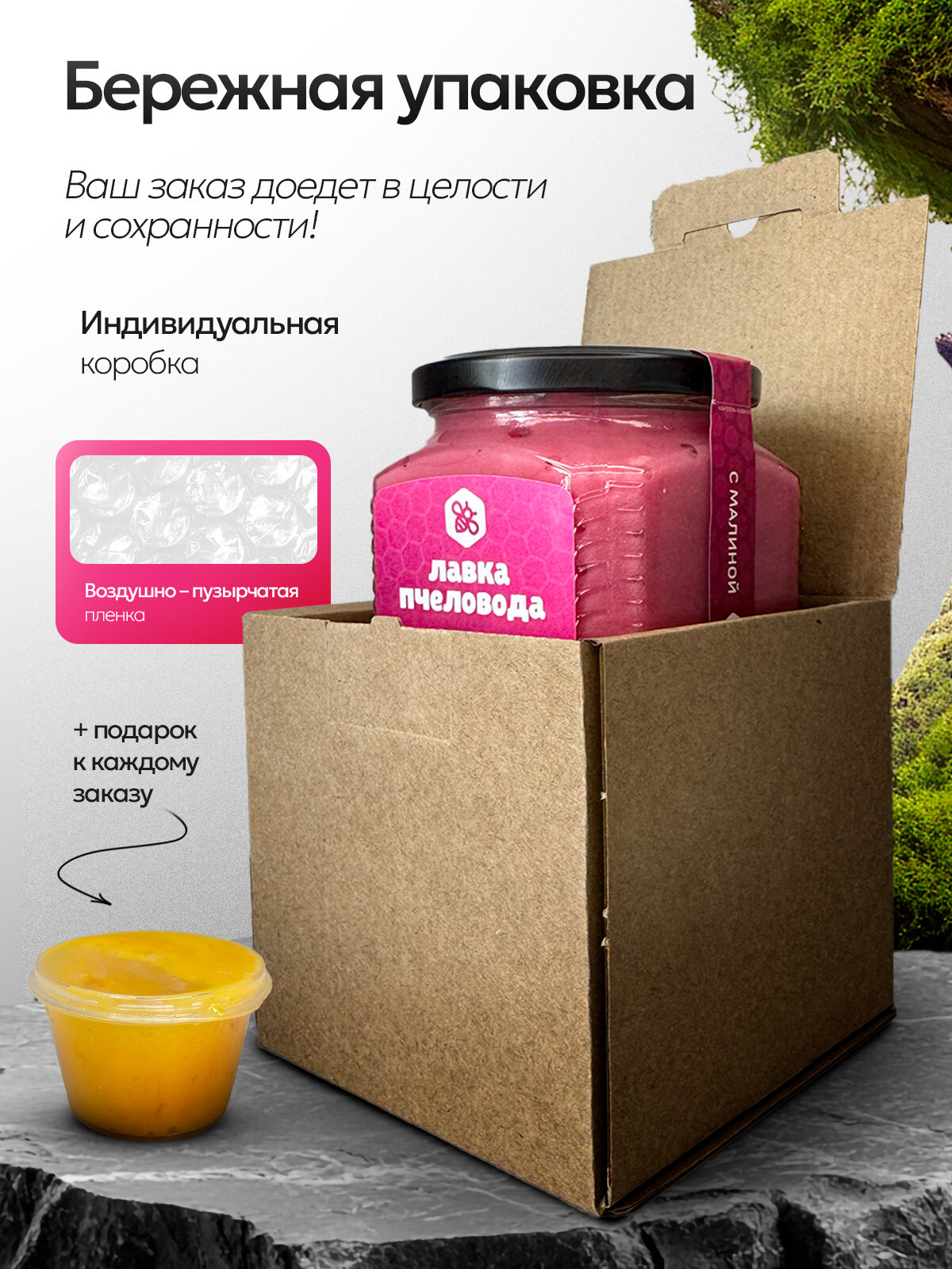 Мед натуральный суфле, с малиной, продукты питания без сахара, 500г интересное: