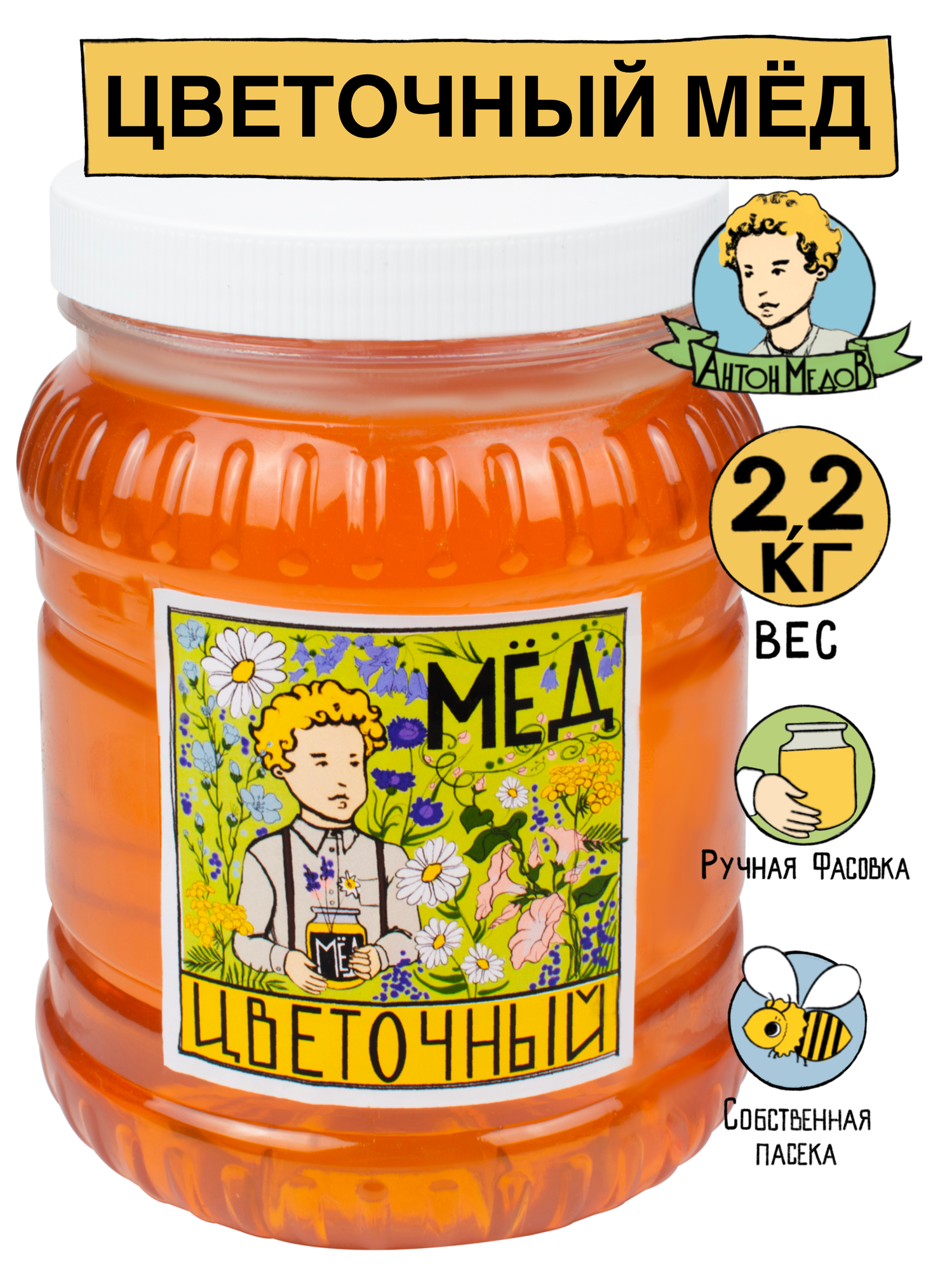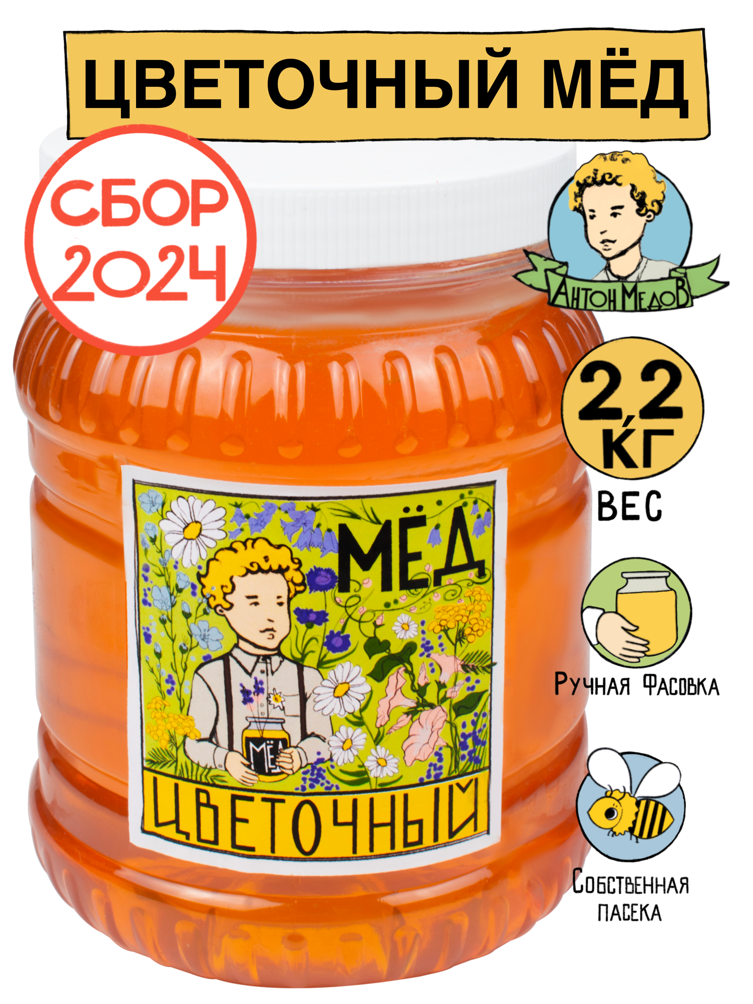 Купить Антон Медов/Мед Цветочный натуральный 2.2 кг Без сахара 2024 г.