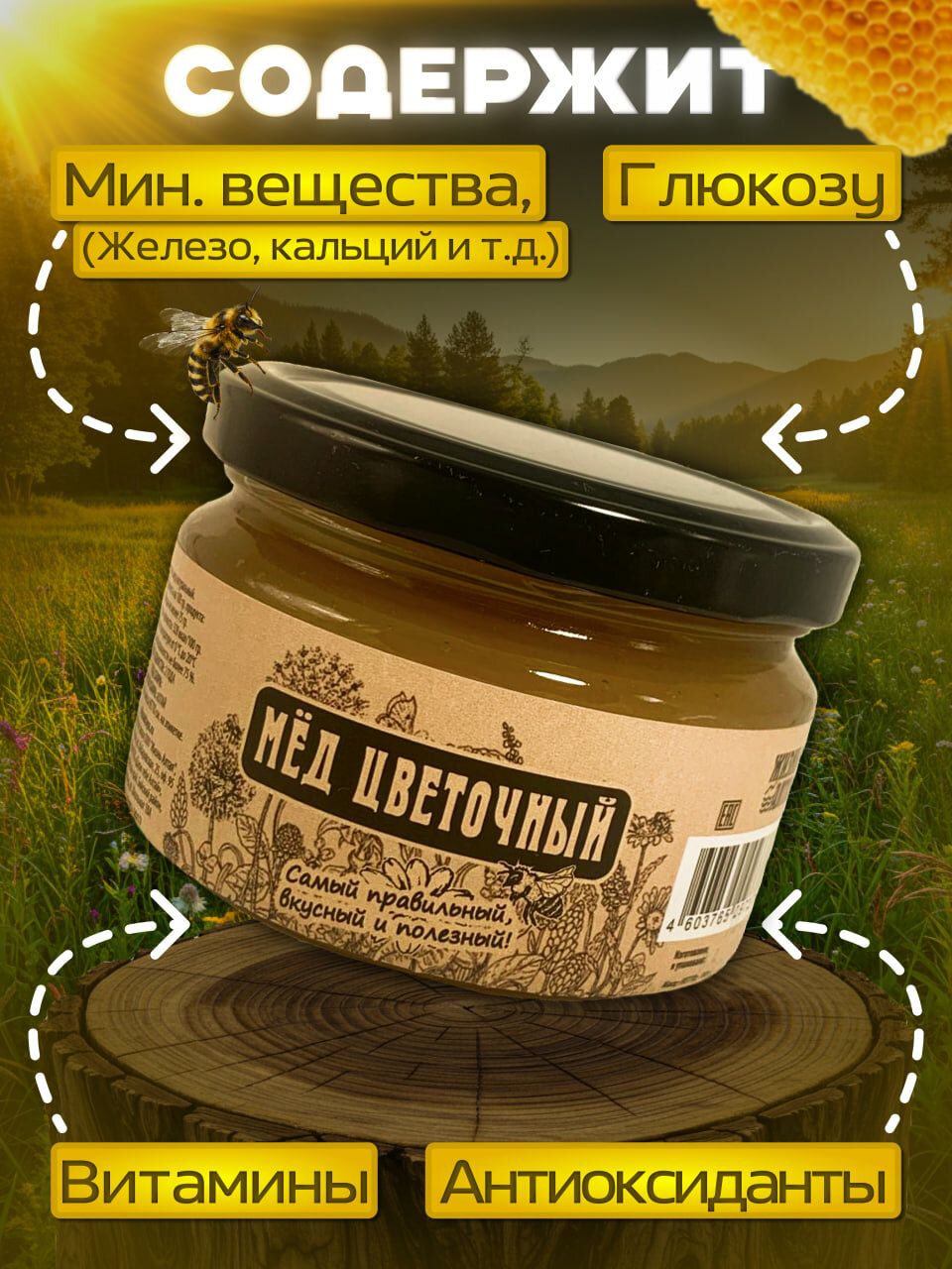 Мёд Натуральный Цветочный, "Жизнь Алтая" 300гр. Год сбора:2024г интересное:
