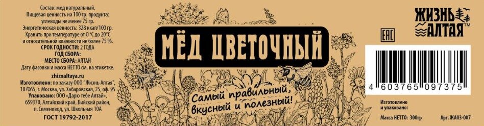 Купить Мёд Натуральный Цветочный, "Жизнь Алтая" 300гр. Год сбора:2024г
