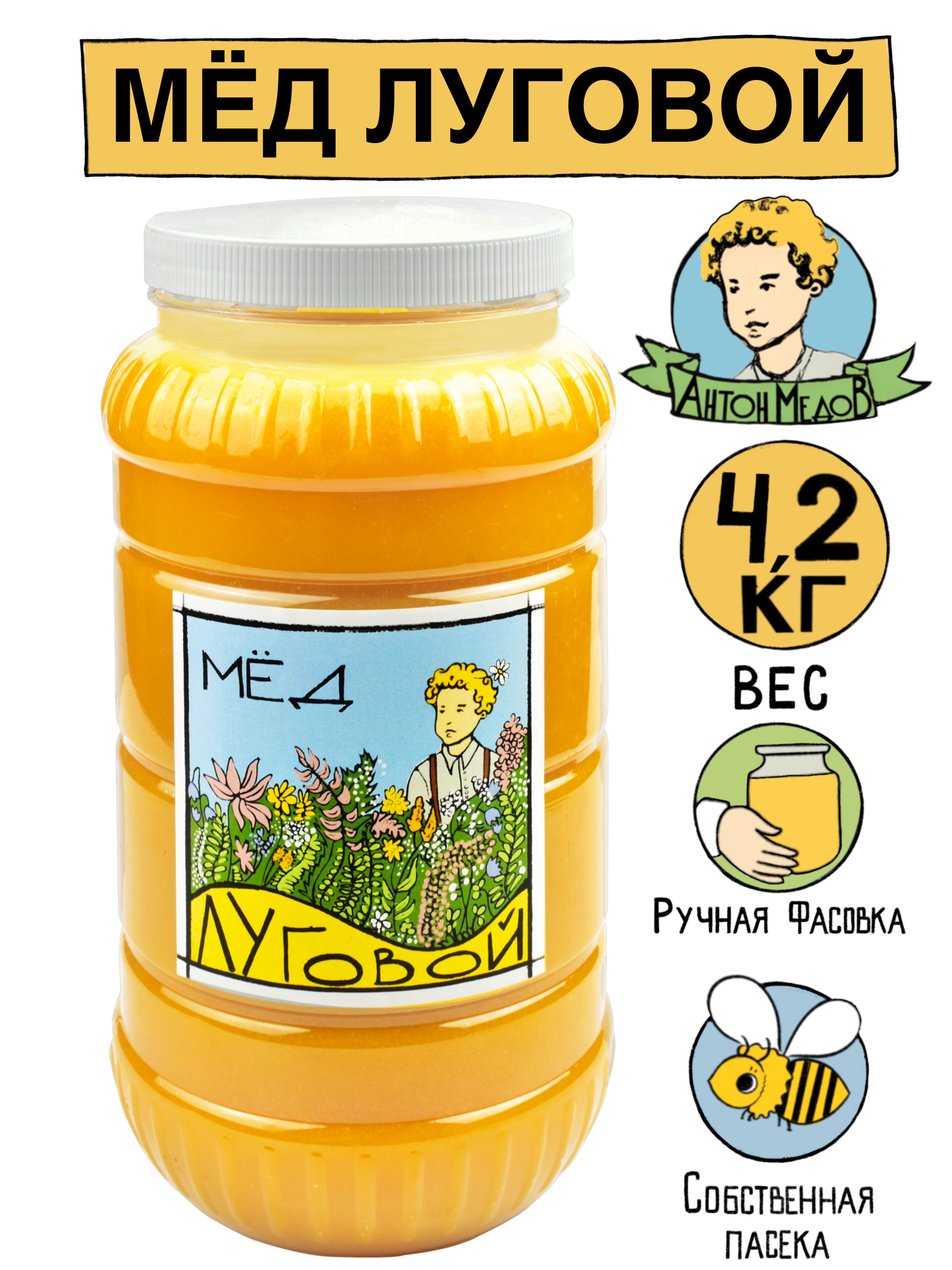 Антон Медов/Мед Луговой натуральный 4.2 кг Без сахара 2024 г. Полезные сладости интересное: