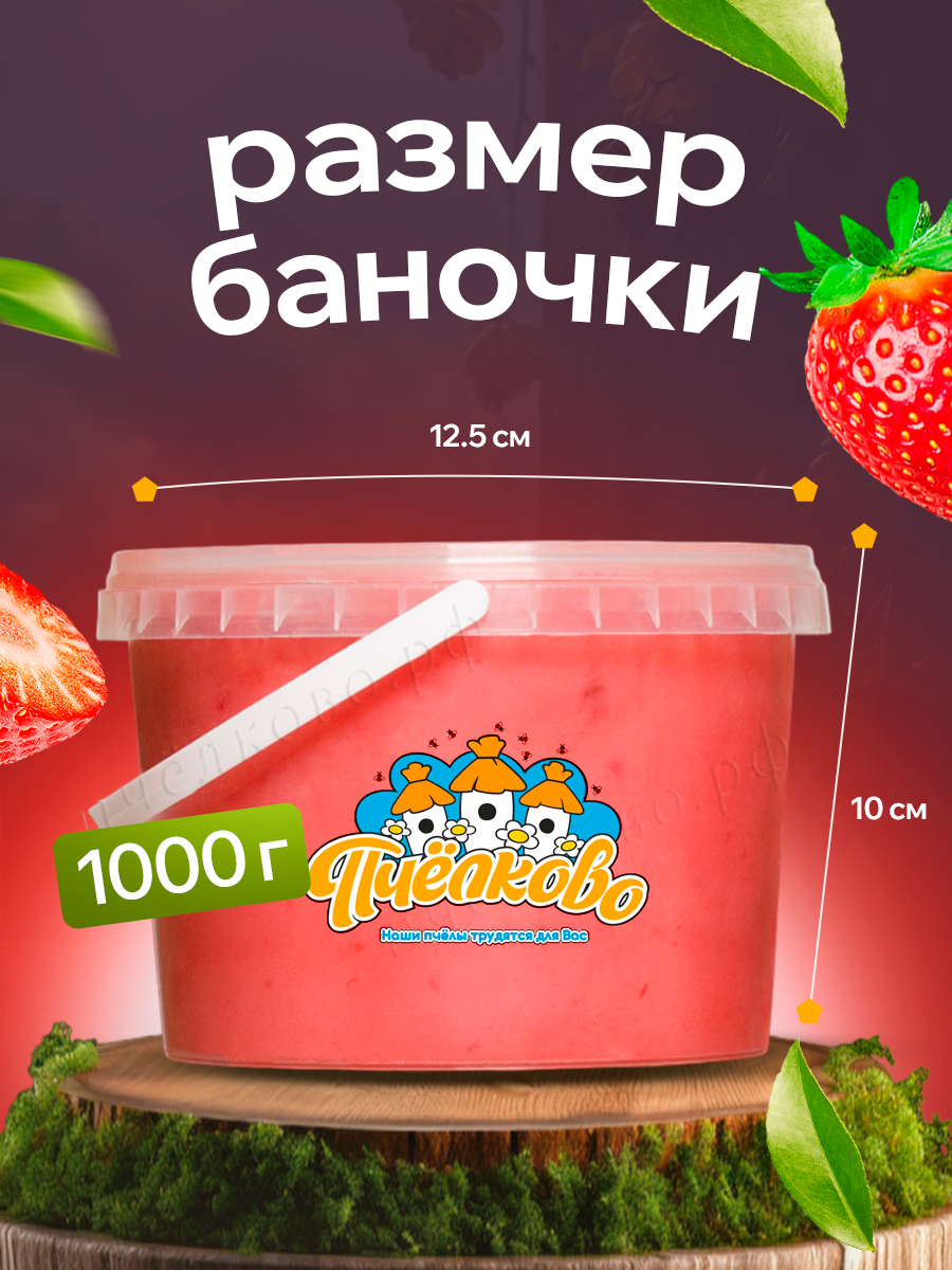 Крем-мед с Малиной от "Пчёлково", 1000гр, цветочный, органический, с сублимированными ягодами. интересное: