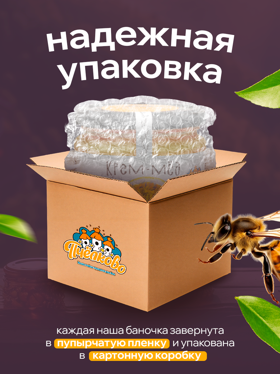 Крем мед с Малиной "Пчёлково" 250г, цветочный, с сублимированными ягодами.