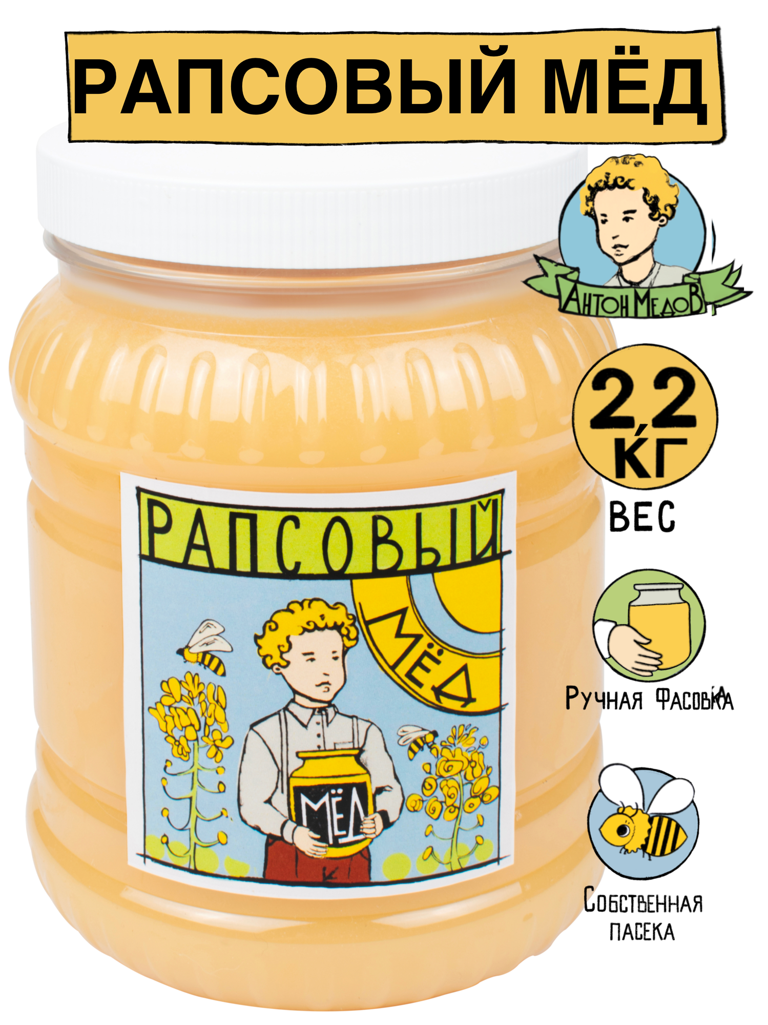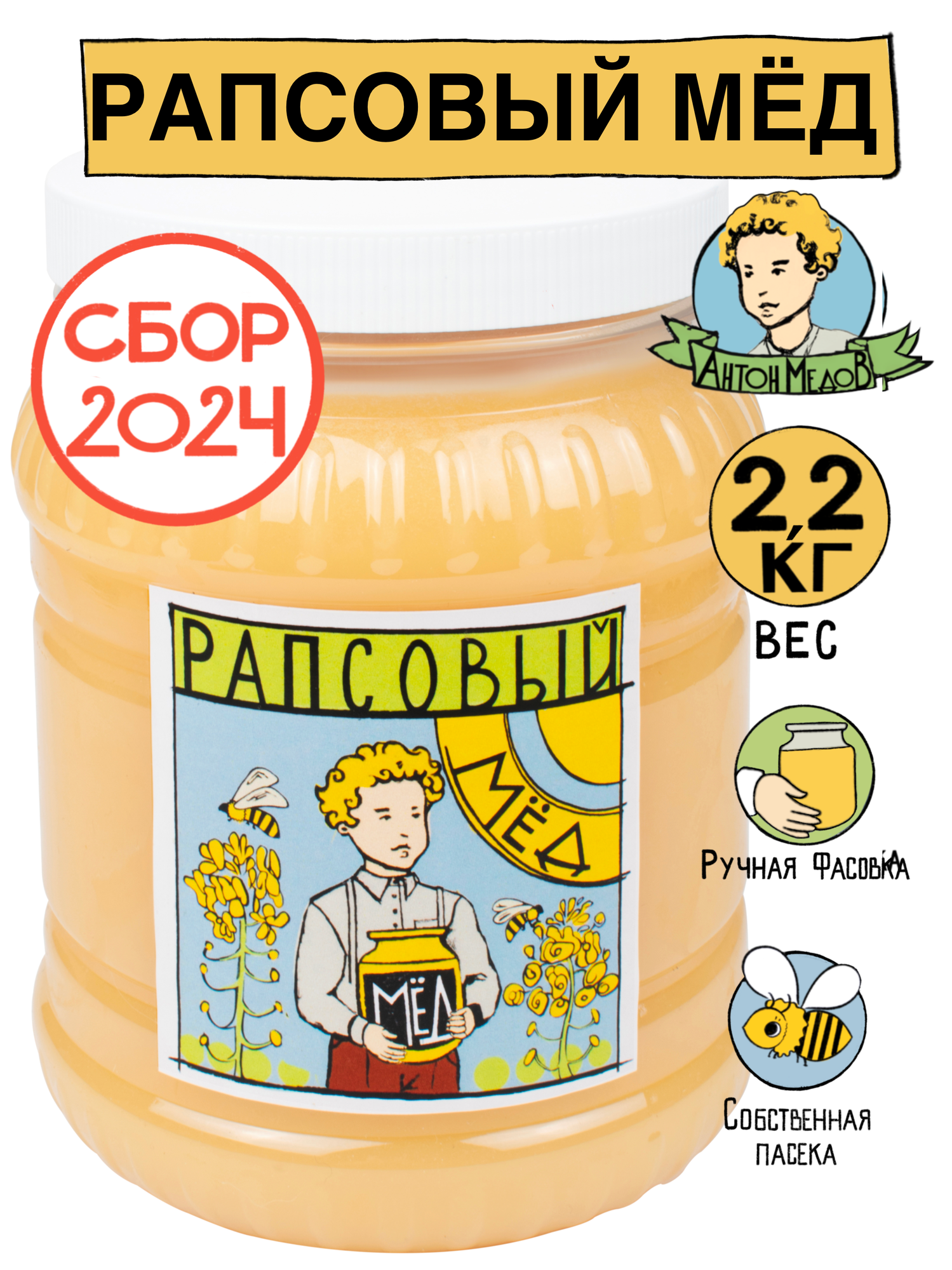 Антон медов/Мёд Рапсовый натуральный 2.2 кг Без Сахара 2024 г. Для иммунитета интересное:
