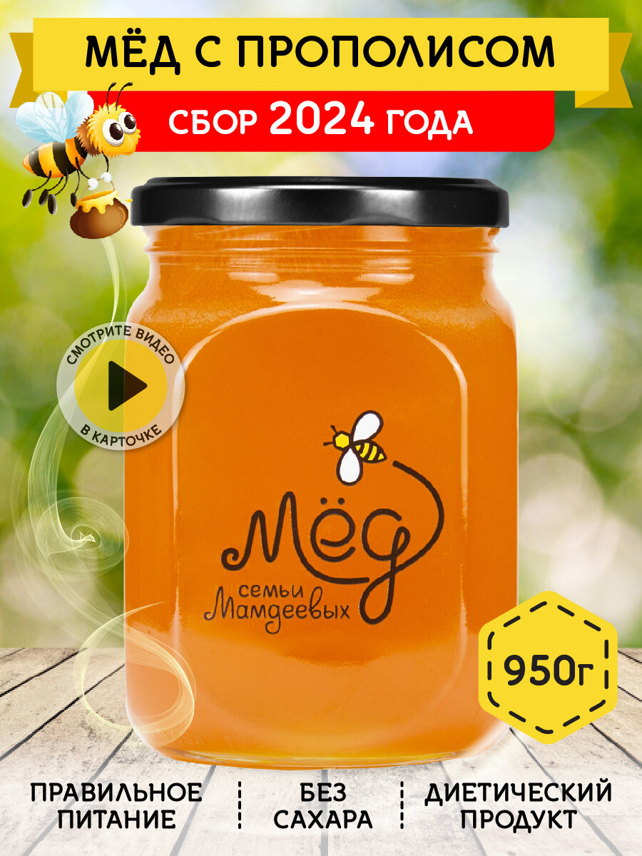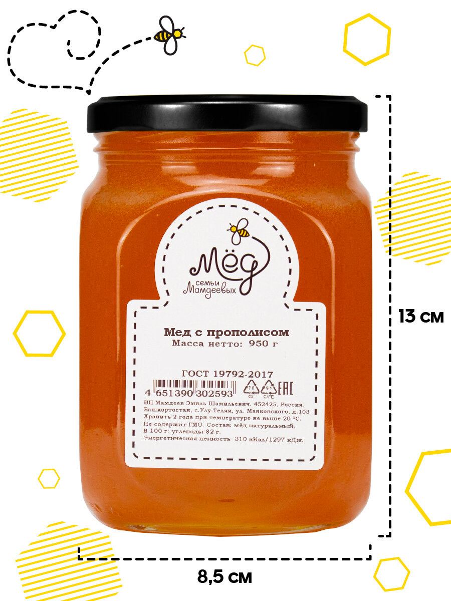 Мёд с прополисом, 950 г Башкирский натуральный мед, без сахара интересное: