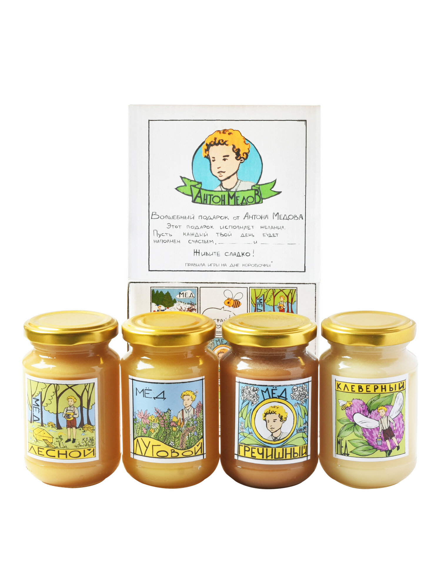 Купить Подарочный набор № 5 натурального меда 4 шт по 250 г Клеверный Лесной Луговой Гречишный
