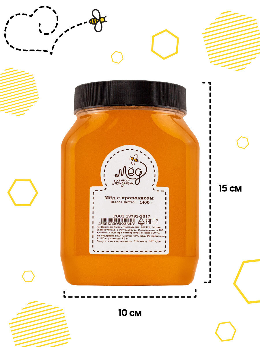 Мёд с прополисом, 1,4 кг Башкирский натуральный мед, без сахара интересное: