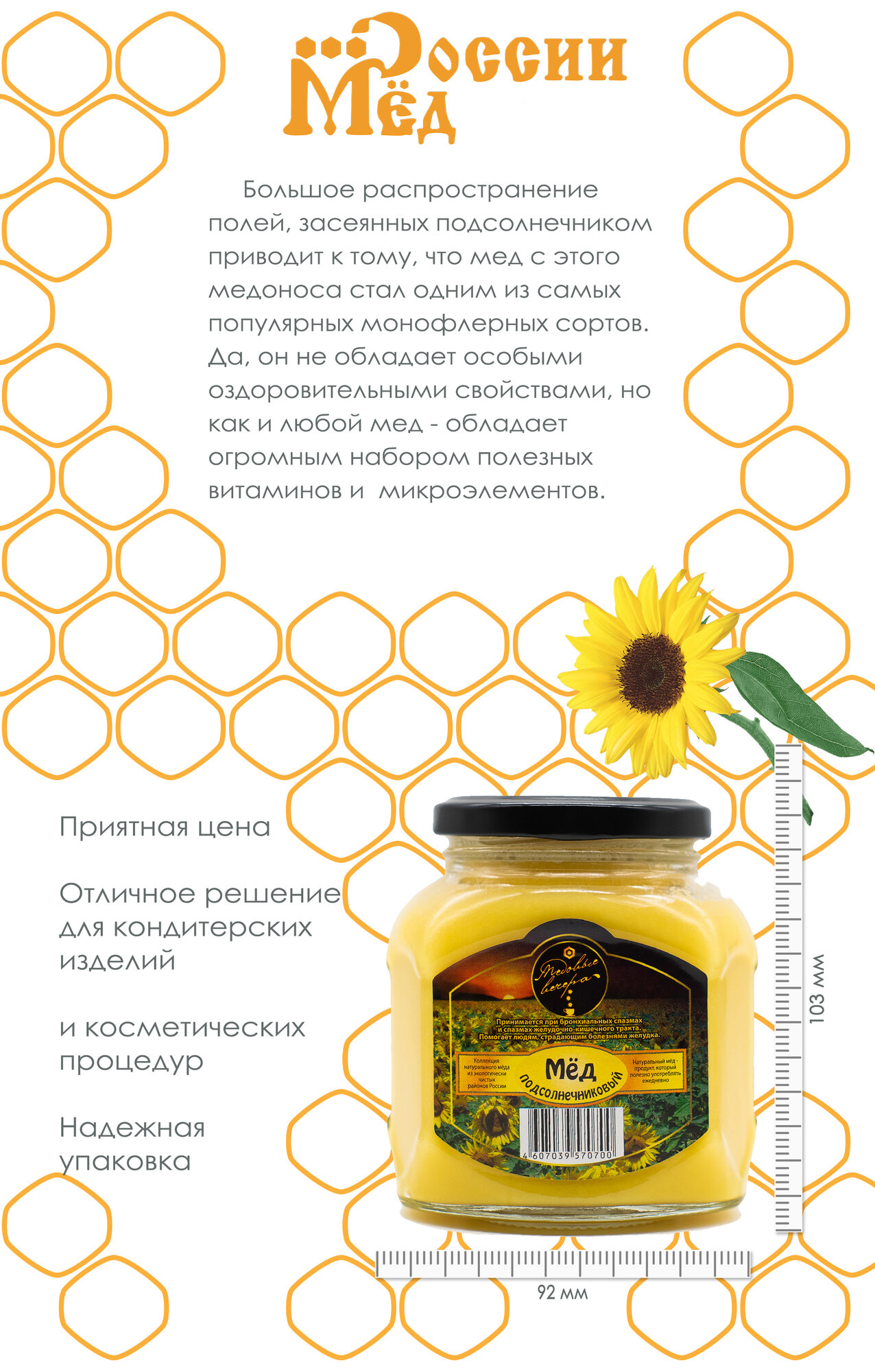 Мёд натуральный Подсолнечниковый 500 гр. / Медовые вечера интересное: