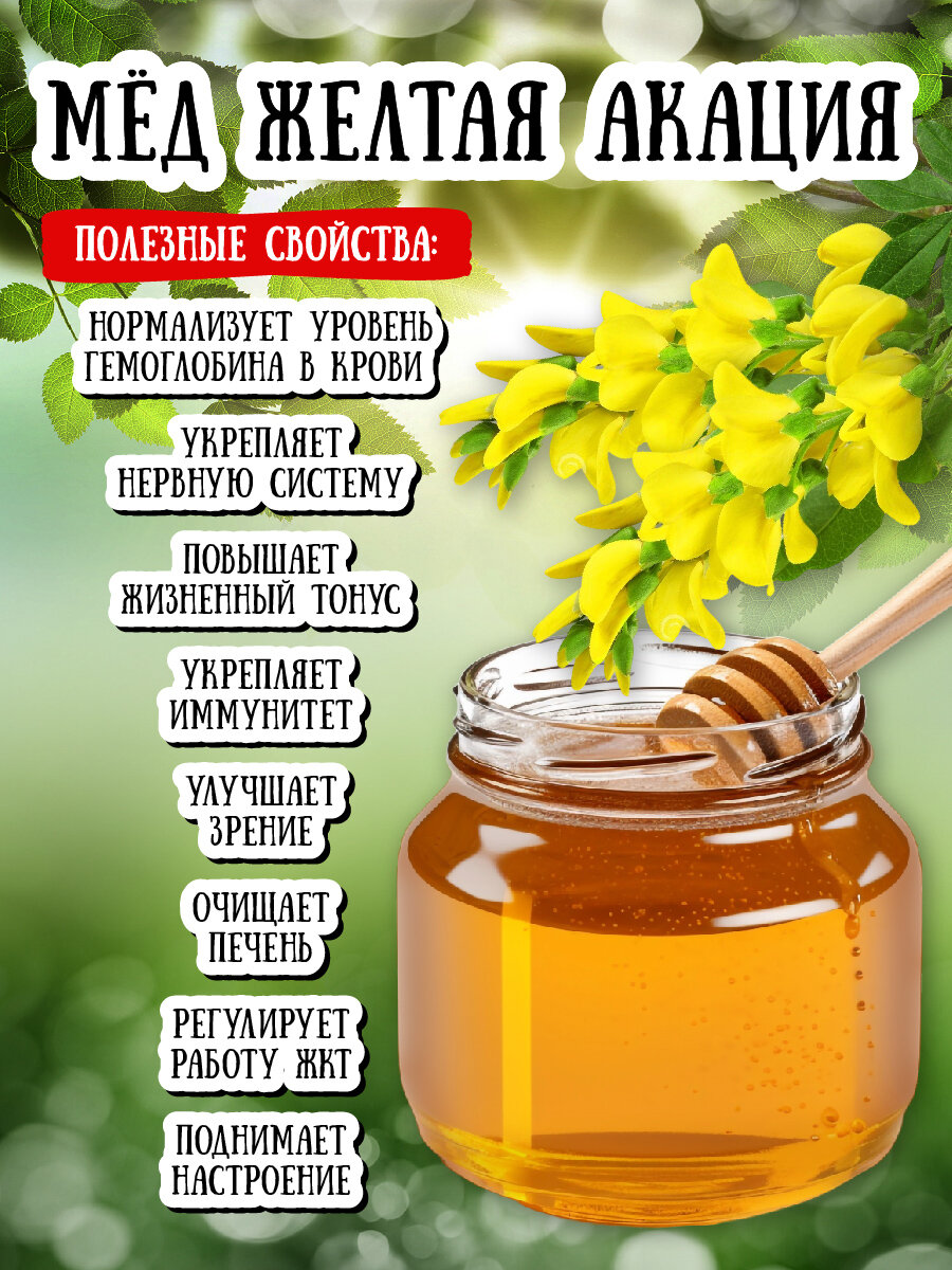 Мёд желтая акация, 500 гр натуральный мед, без сахара интересное: