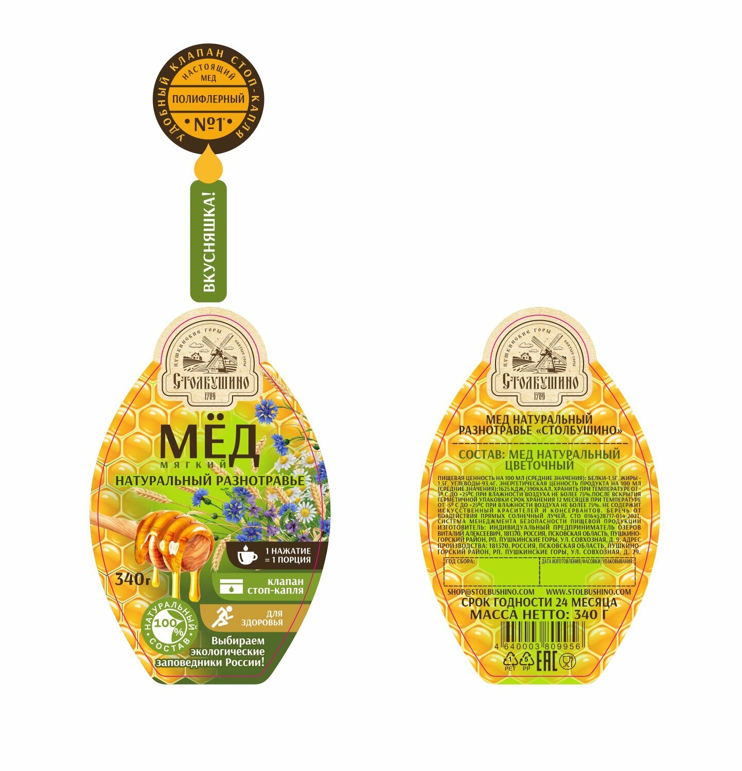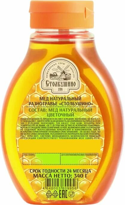 Мёд натуральный разнотравье "Столбушино", с клапаном-дозатором, 340г. интересное: