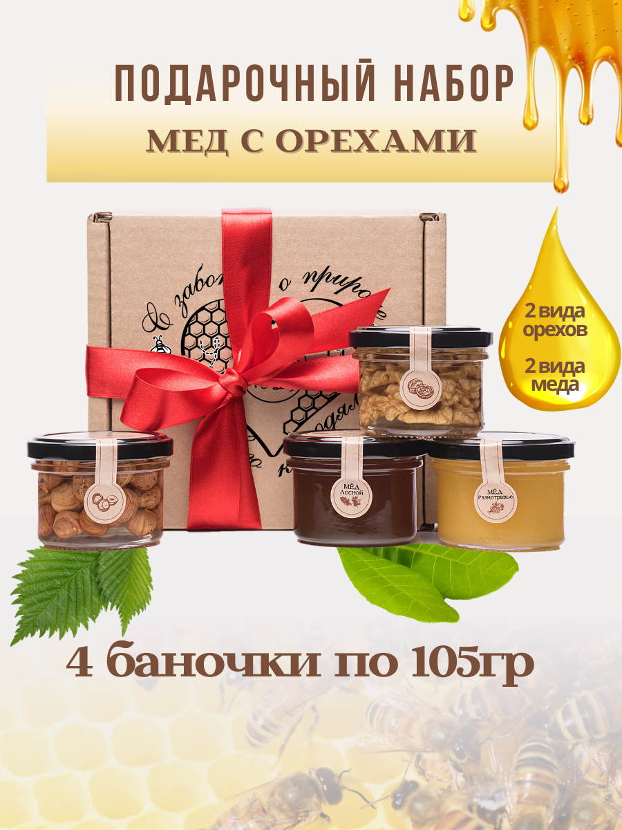 Подарочный набор Пасека Врублевских "Медовый", мёд с орехами, 4 баночки интересное: