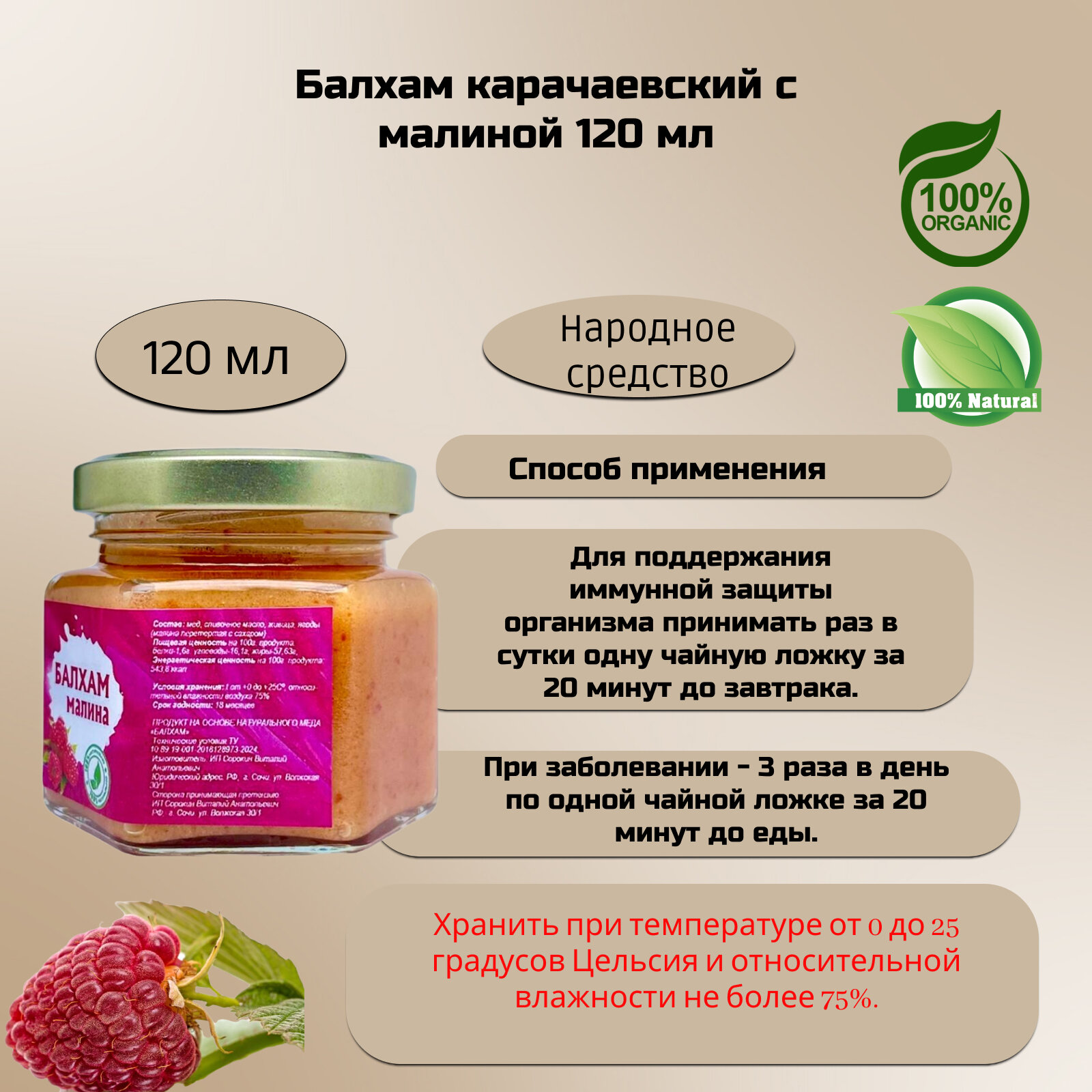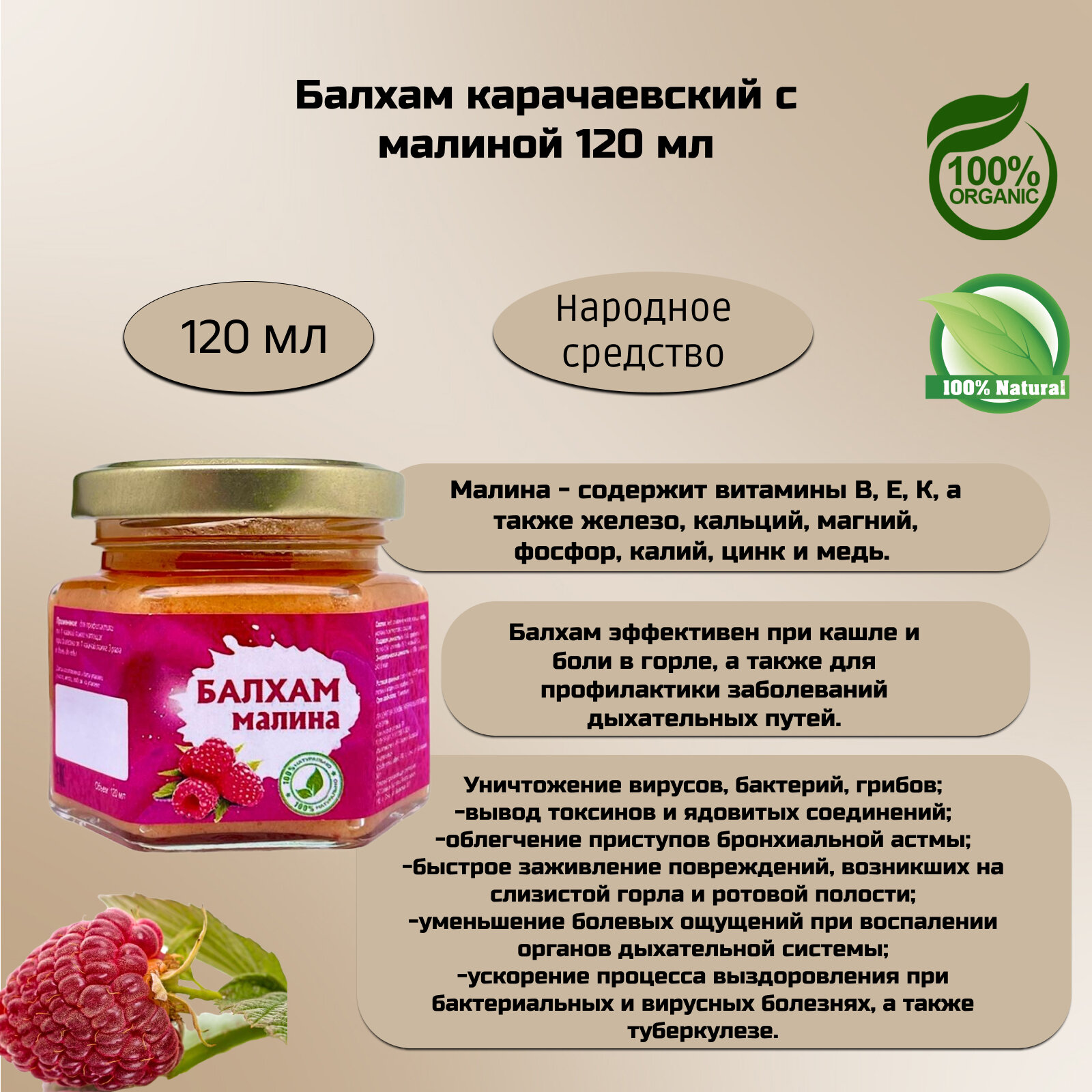 Балхам карачаевский при заболеваниях органов дыхания (мед + сосновая смола +топленое масло, прополис, малина), 120 мл интересное: