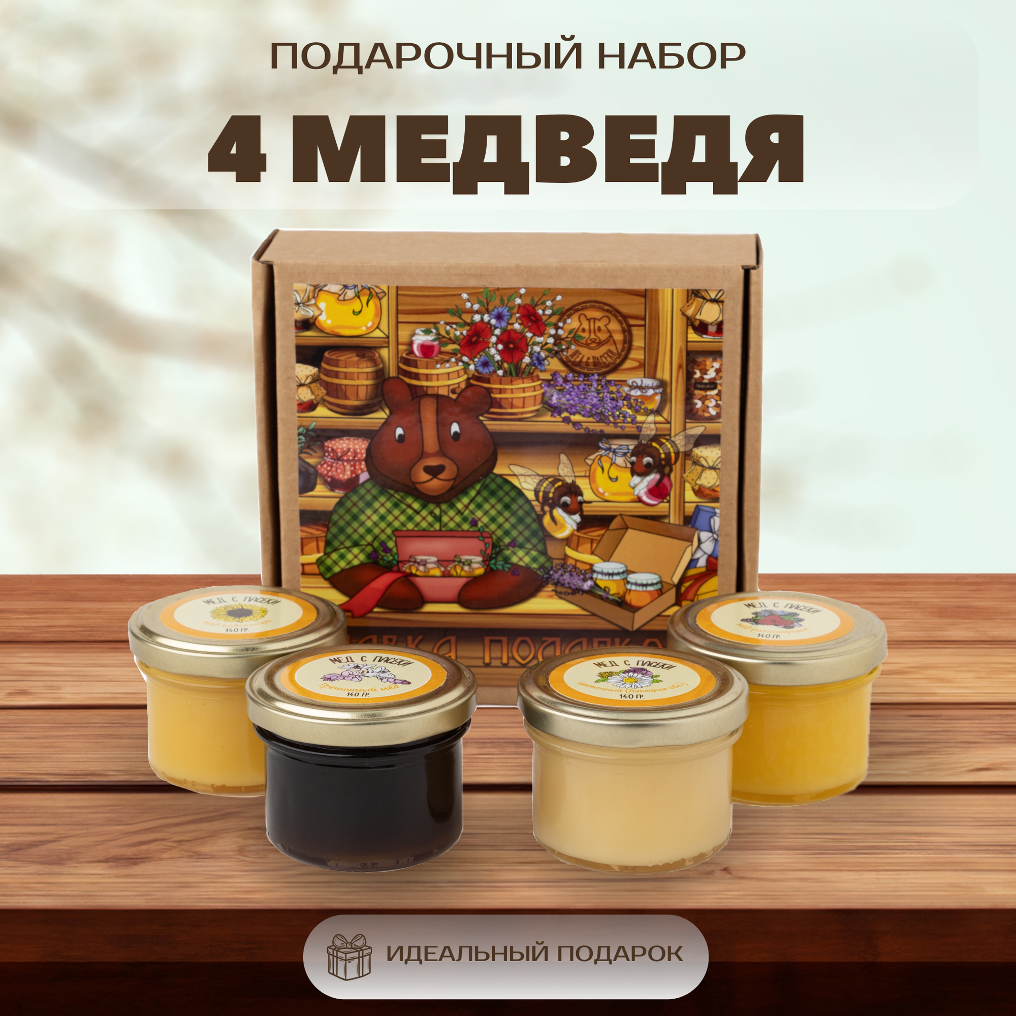 Подарочный набор 4 вида меда. Для женщин, для мужчин. Новый год интересное: