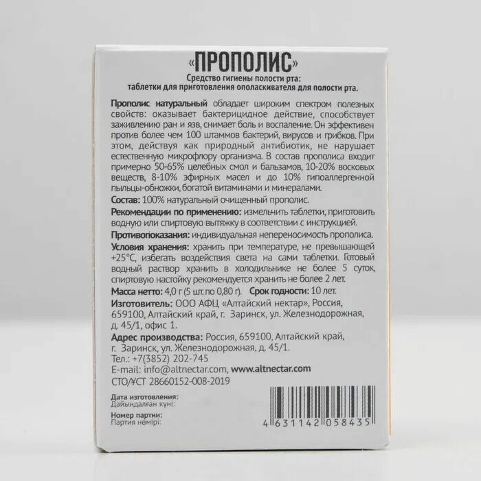 Прополис пчелиный натуральный, 5 таблеток по 0,8 г. интересное: