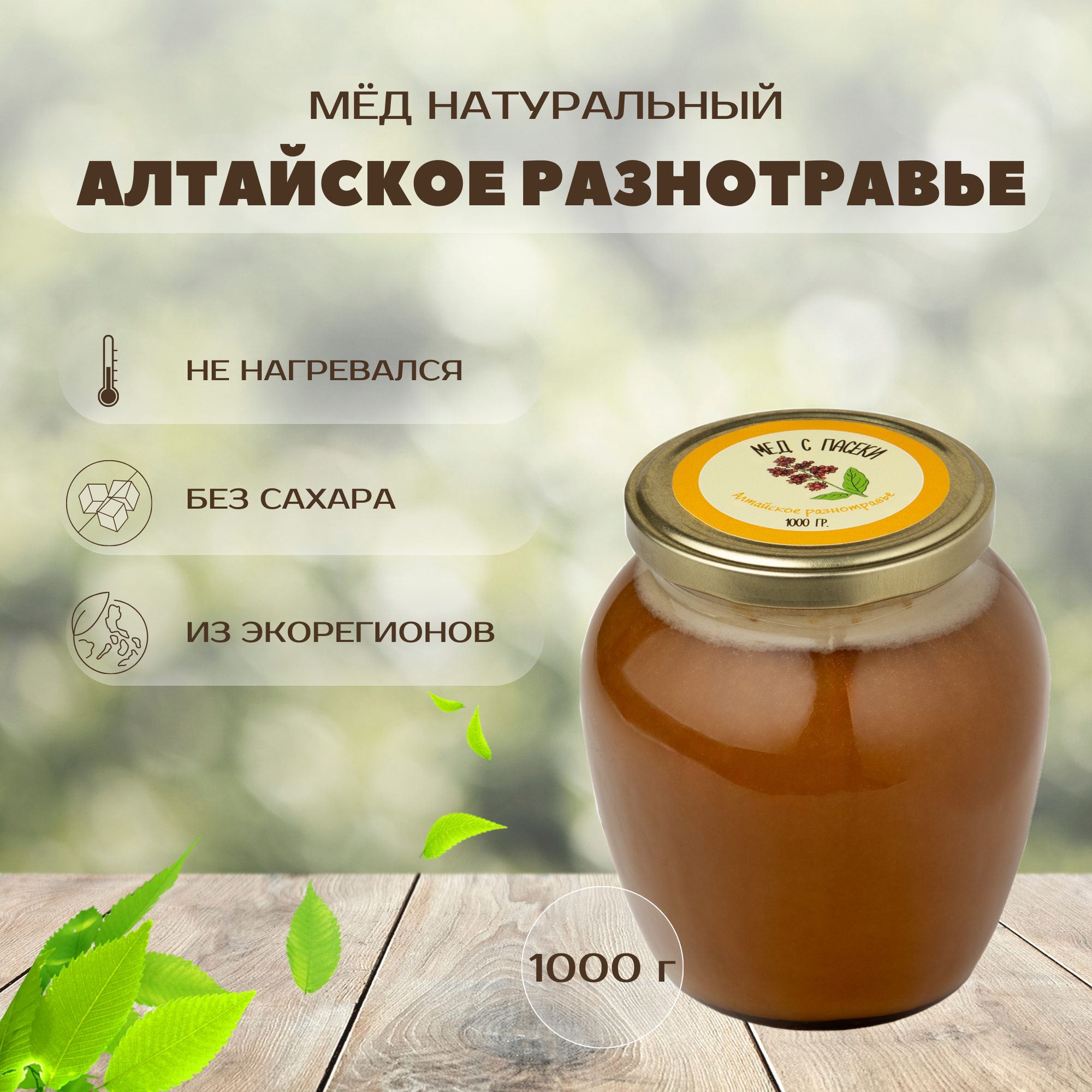 Мед натуральный Алтайское разнотравье 1 кг, в стеклянной банке интересное: