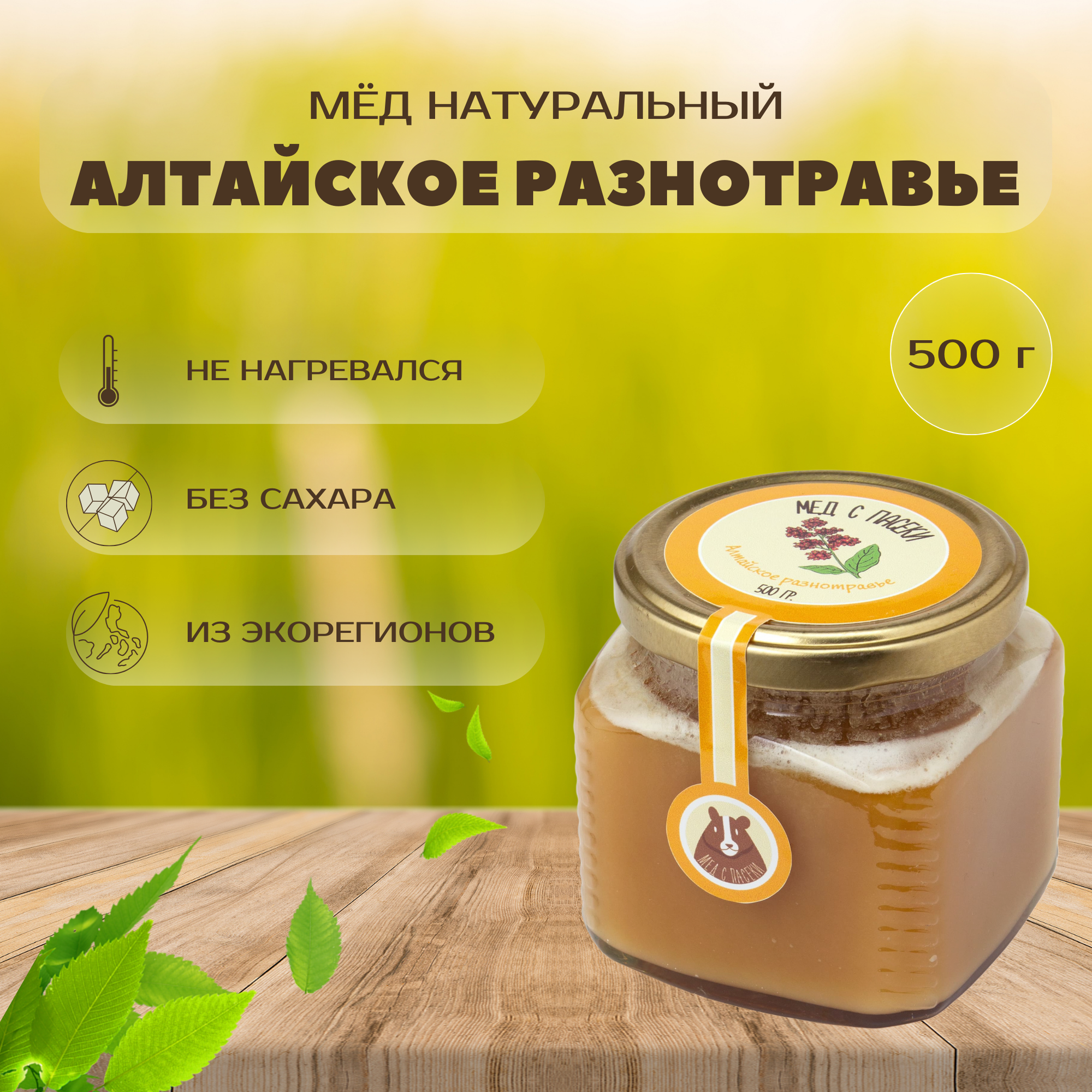 Купить Мед натуральный Алтайское разнотравье 500 г, в стеклянной банке