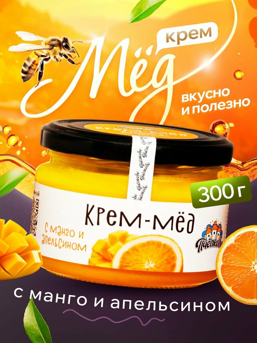 Мед с Манго и Апельсином, 300г, цветочный, с сублимированными фруктами. интересное: