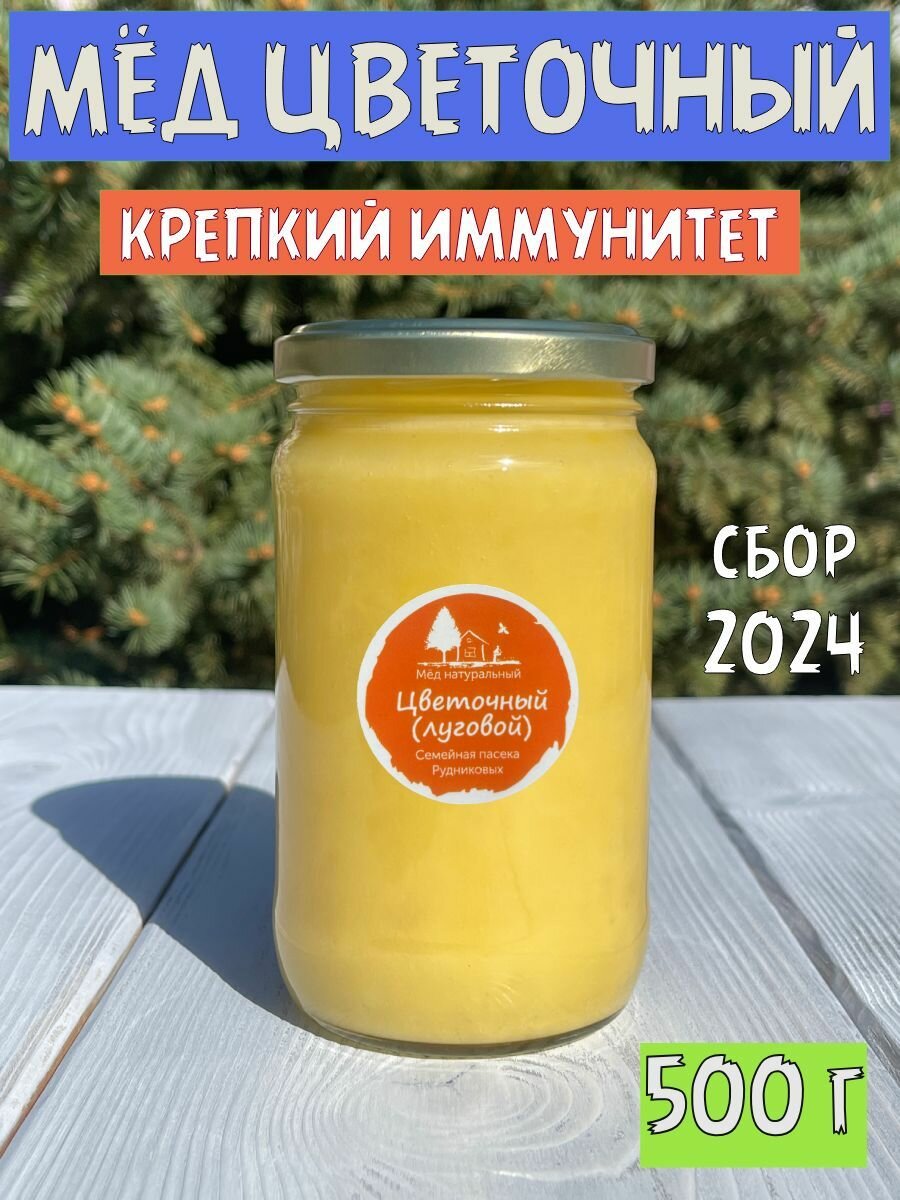 Мёд натуральный цветочный, луговой мед , 500 г, "Семейная пасека Рудниковых" Сбор 2024 г, сладости без сахара интересное: