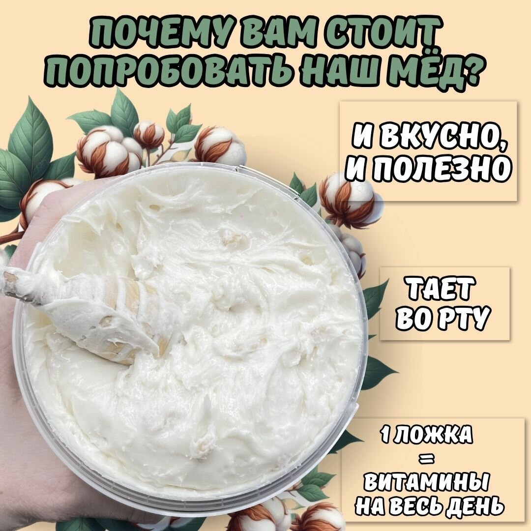 Мед натуральный Хлопковый / Белый Мед суфле / Крем мёд интересное: