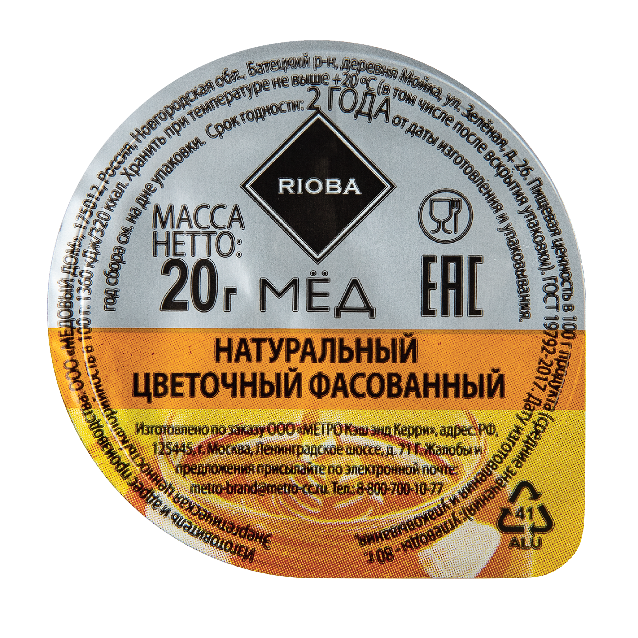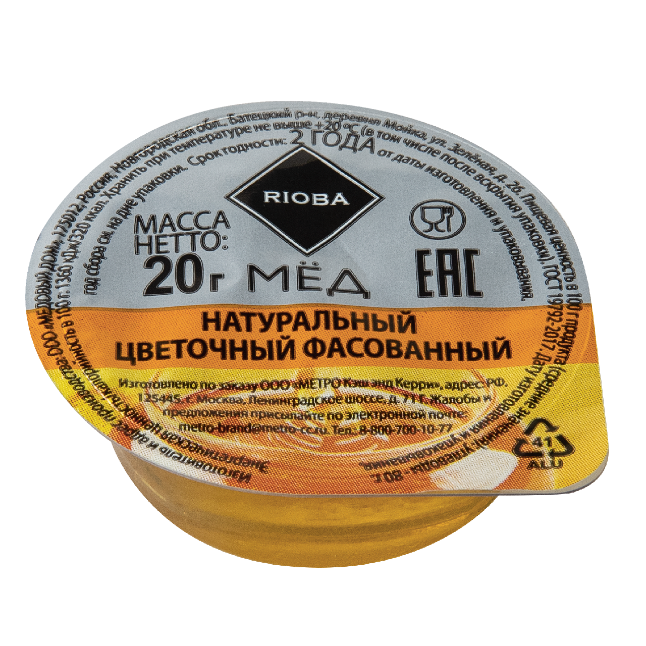 RIOBA Мёд цветочный порционный натуральный (20г х 20шт), 400г интересное: