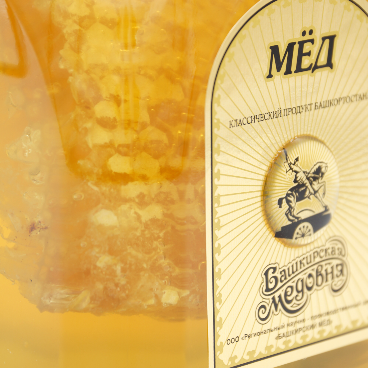 Мёд натуральный Башкирский цветочный с сотой "Башкирская медовня" 1100 гр стекло интересное: