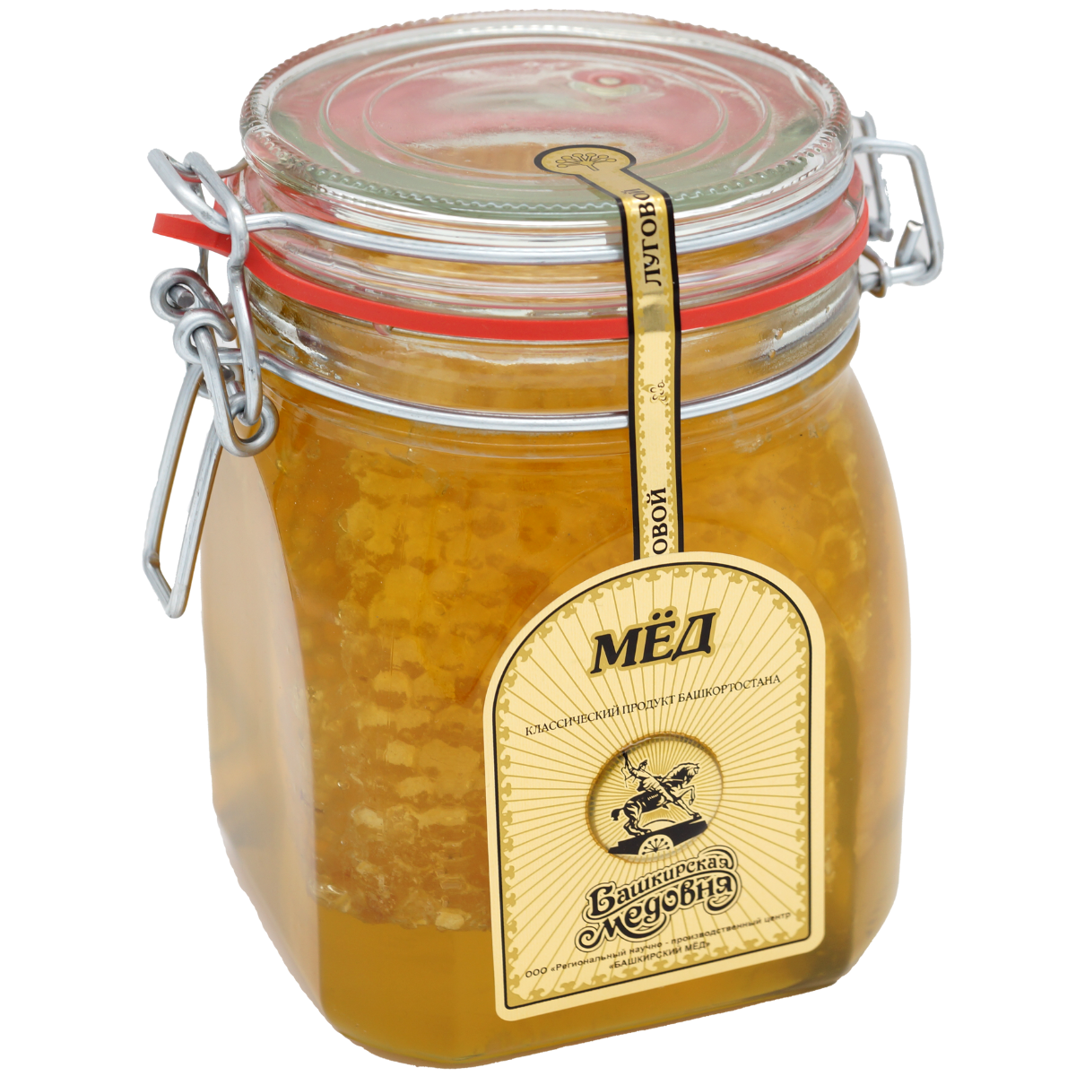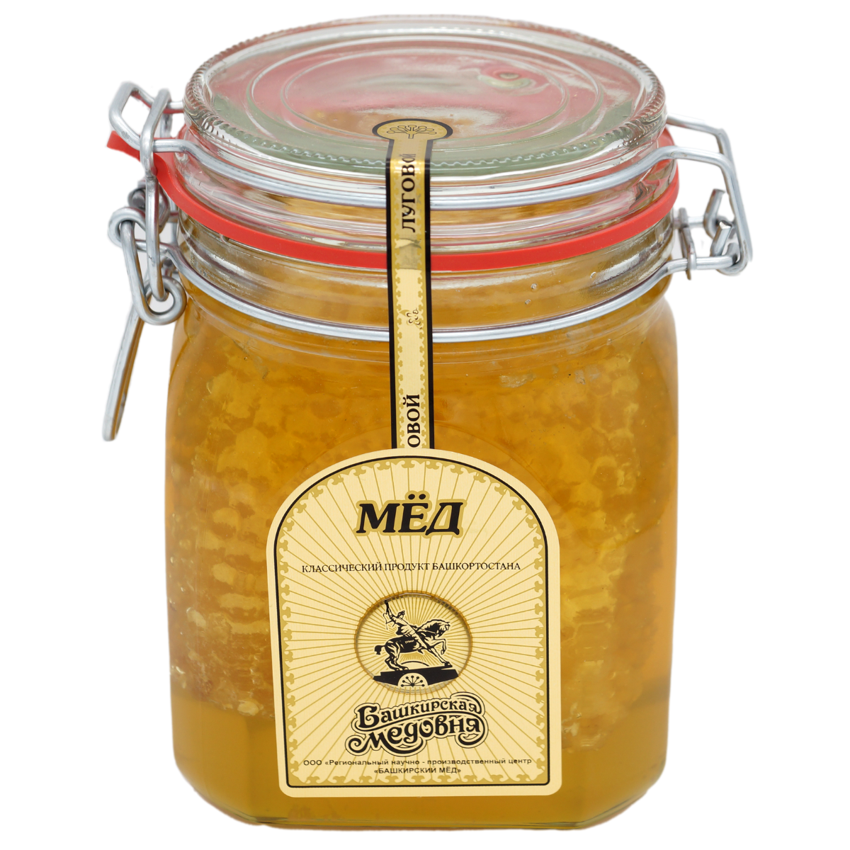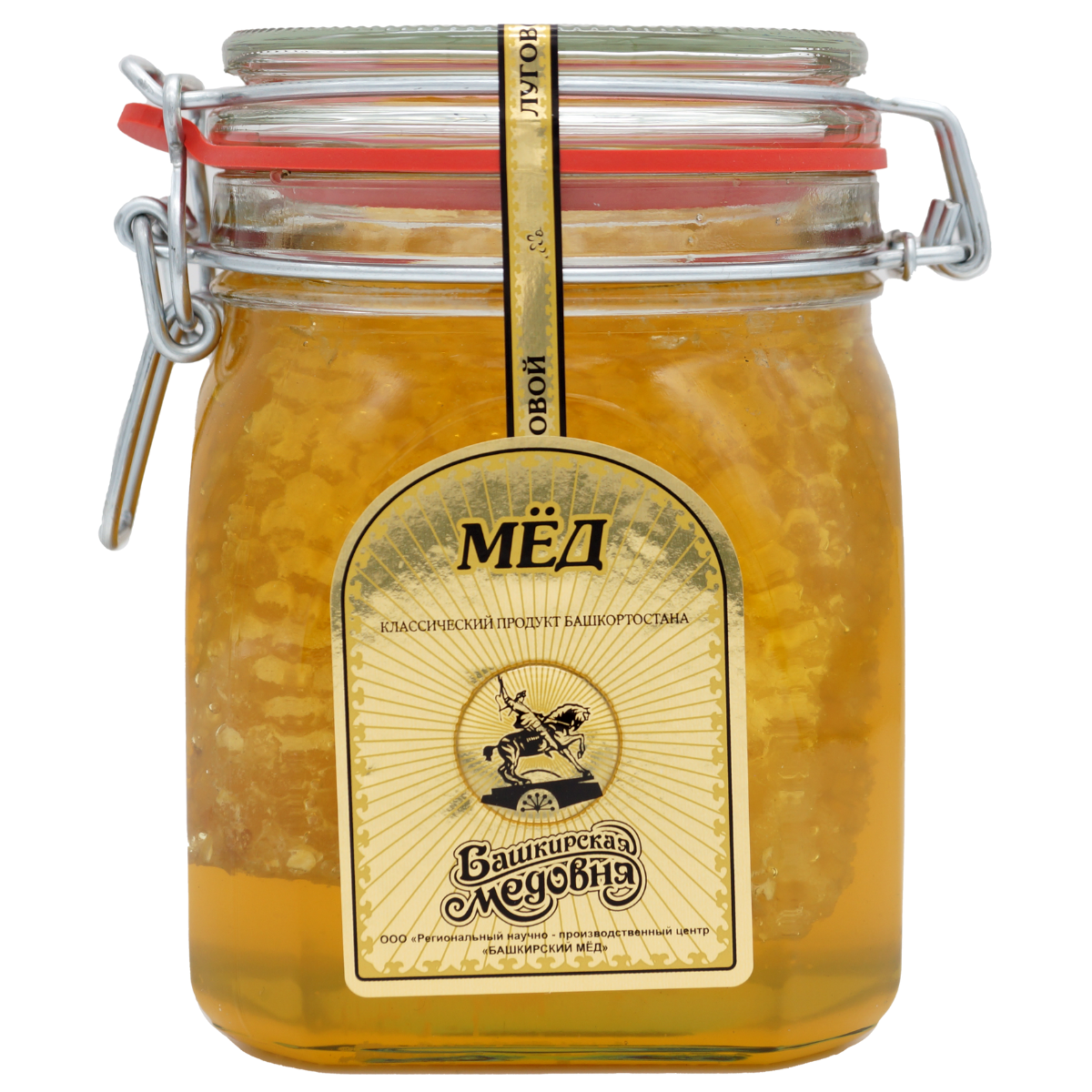 Купить Мёд натуральный Башкирский цветочный с сотой "Башкирская медовня" 1100 гр стекло
