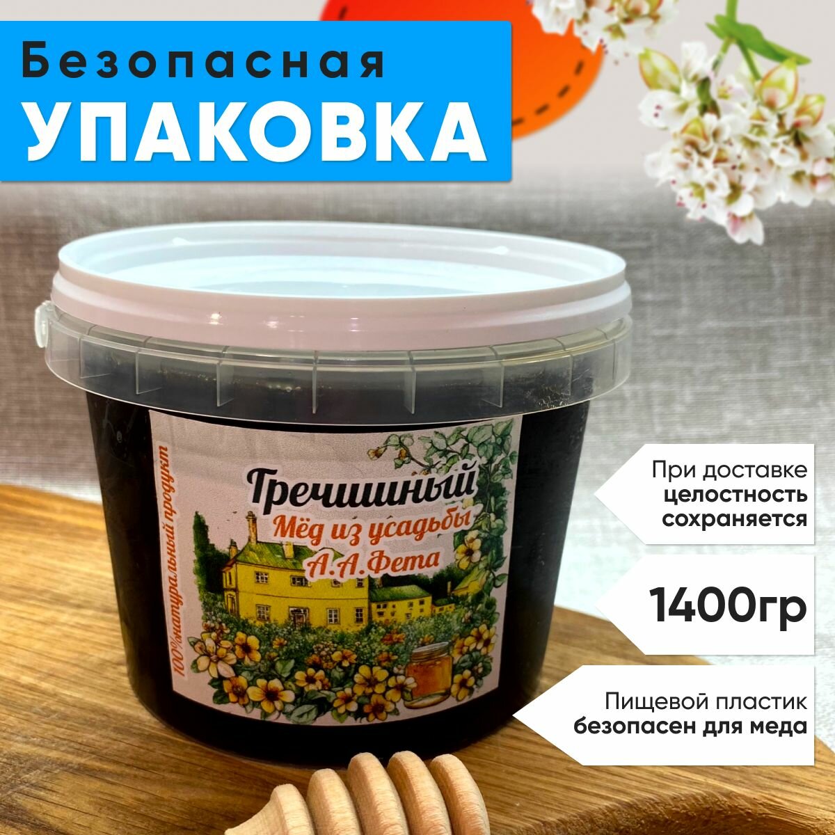 Мед гречишный 1литр (1400 грамм )2024г натуральный мед, без сахара, диетический интересное: