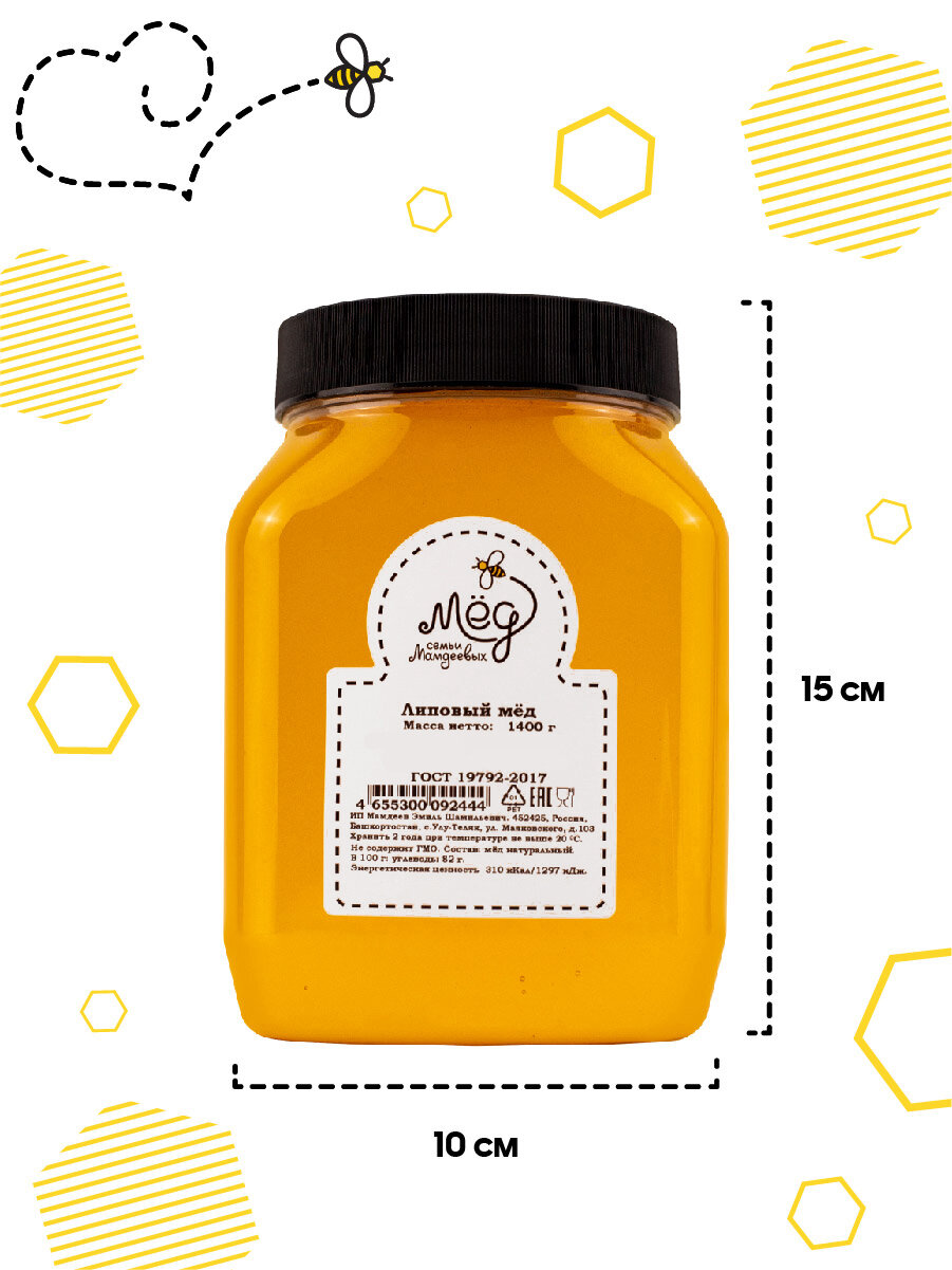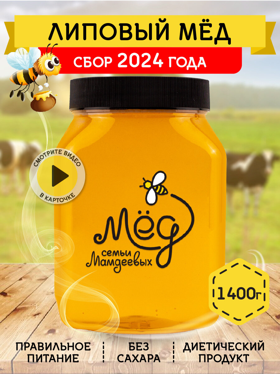 Липовый мёд, 1,4 кг Натуральный мед без сахара интересное: