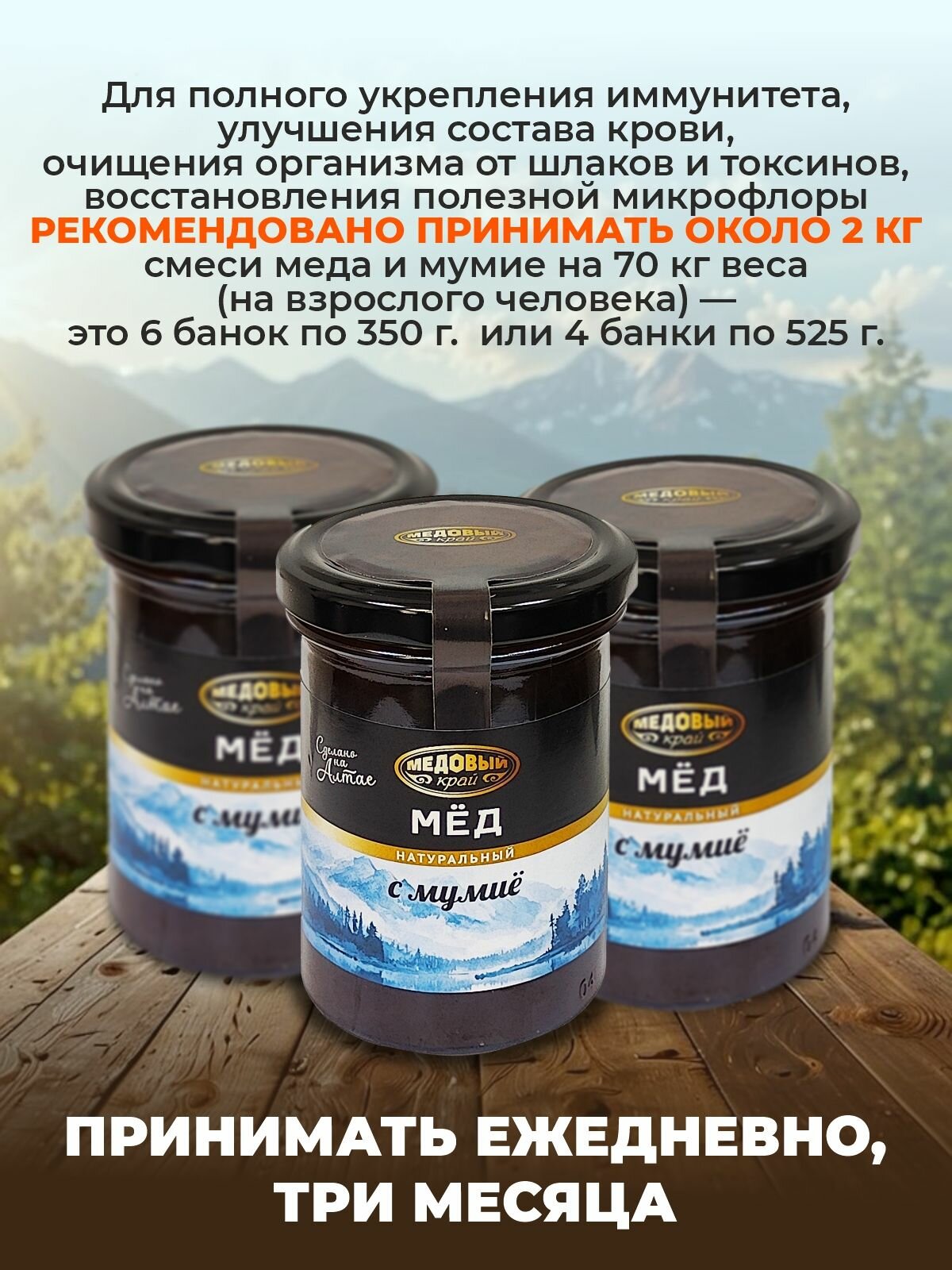 Мед с Мумие 100% натуральный 300гр, набор 3 шт. 2024 интересное: