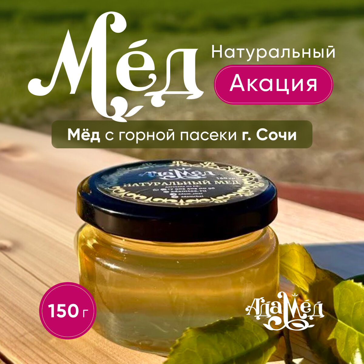 Натуральный акациевый мед, Адам чай, собственное производство г. Сочи, 150 гр. интересное: